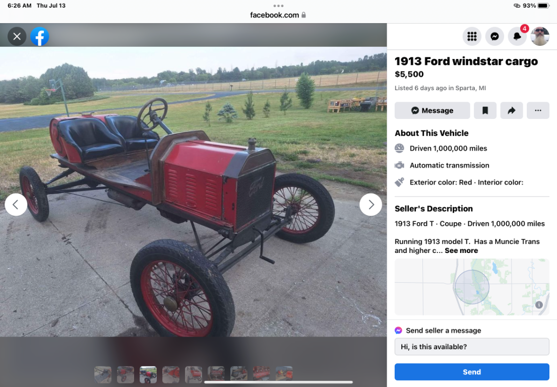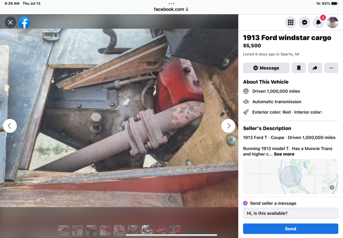1913 coupe (Windstar Cargo) with 1,000,000 miles under its belt.