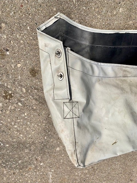 This is an older top boot, in white, made custom for a 1926-1927 (may fit others) Model T Ford Touring Car convertible top. Has all three straps to affix to the back seat and a tie to cinch up the boot tightly as well. Could use a very good cleaning because some mice took up residence over winter. No chew marks but does need deodorizing when you stick your nose in close. Very thick and solid vinyl fabric with black cloth liner.