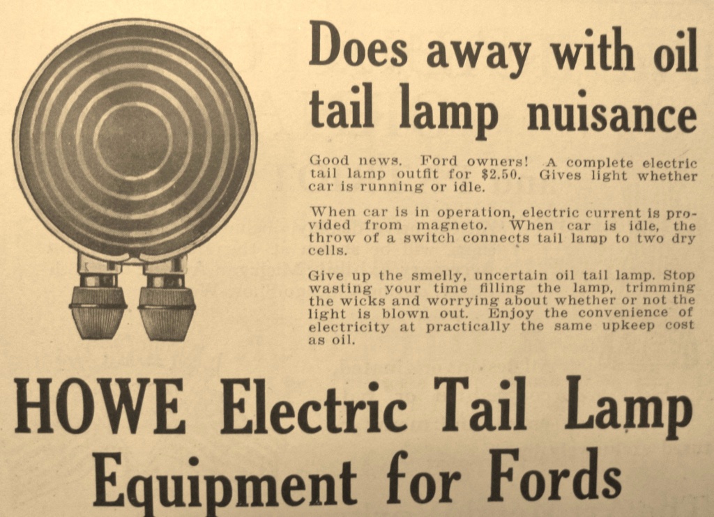 For the neat dual lamp, Ford supplied a single bulb elec. tail lamp beginning 1919. Those dual lamp taillamps are aftermarket accessory.
