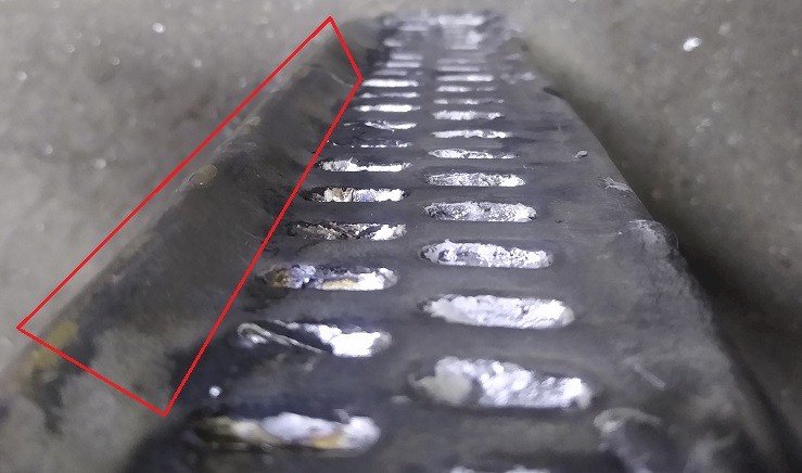The side straps are two-piece steel which overlap, barely welded together, and a random bracket on one side.