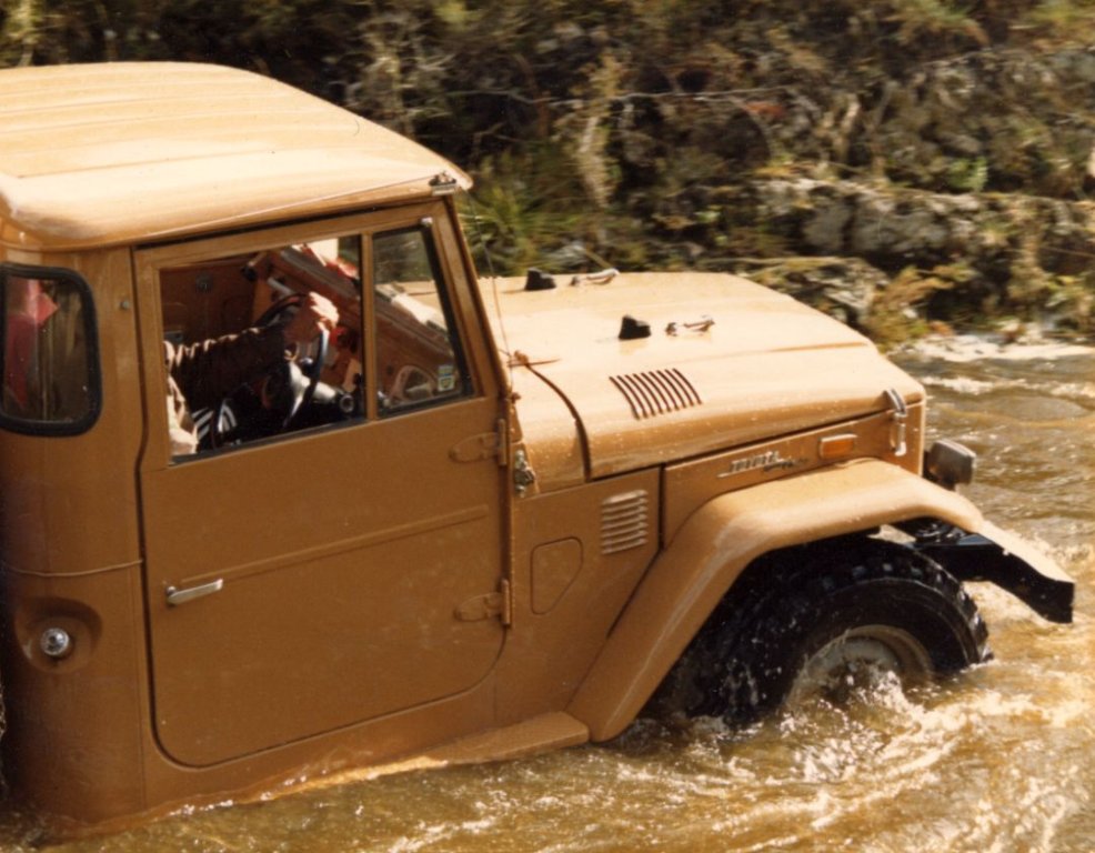 After a while, as a youngster, I moved from Land Rovers (they leaked and broke regularly) to Land Cruisers. This one I purchased in parts for ~$2000 and reground the crank, made new mudguards and roof, then repainted it the then new colour they were being sold in. There is one of these for sale presently at $50,000, and I've seen them as high as $90,000 (no I don't have any now :cry: ):