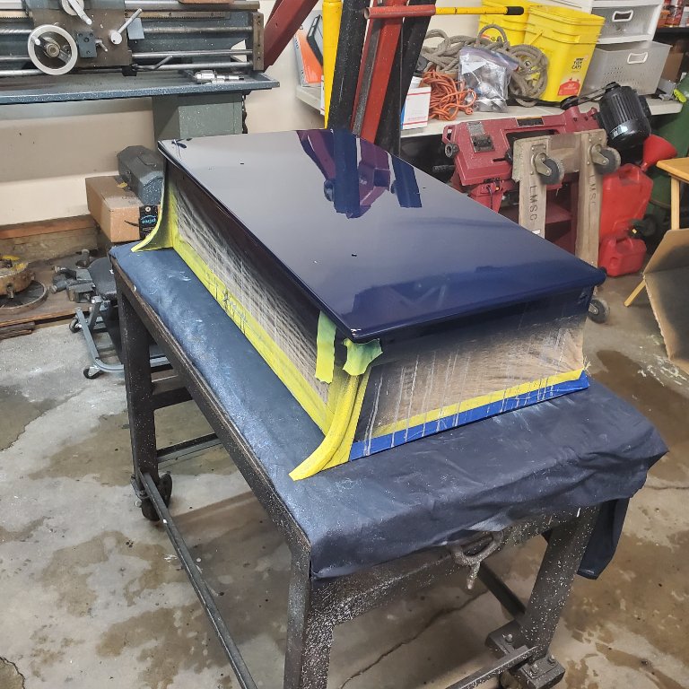 I've been busy repainting the rear seat riser on my 1912 roadster and doing some touch up on a rear fender I scraped struggling to get it installed.