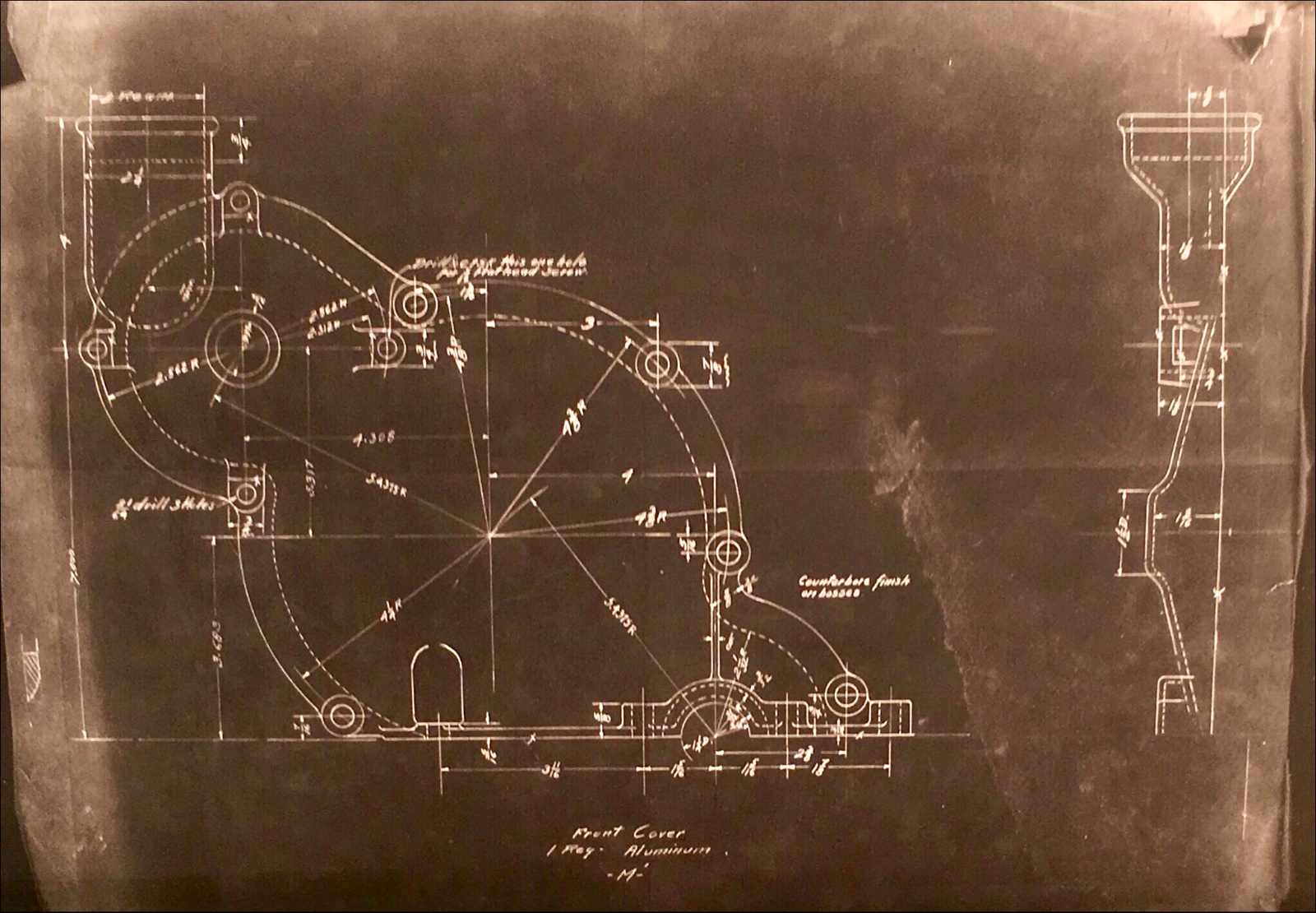 Thanks Ken. Ok, let's get to the ones we know. One of the drawings we have for several variations of the Ford Special racer are the front crankcase covers. The first was the 141 cubic inch M-IV shown above.