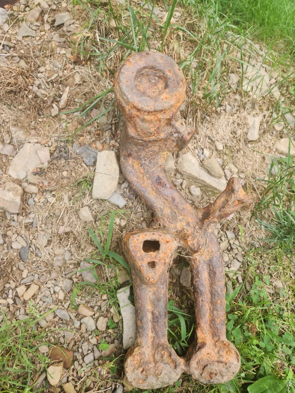 This “thing” was found after a wash out in a creek in Pennsylvania recently. A friend sent me the pictures and I figure this would be the place to try to figure out what it might have been part of.