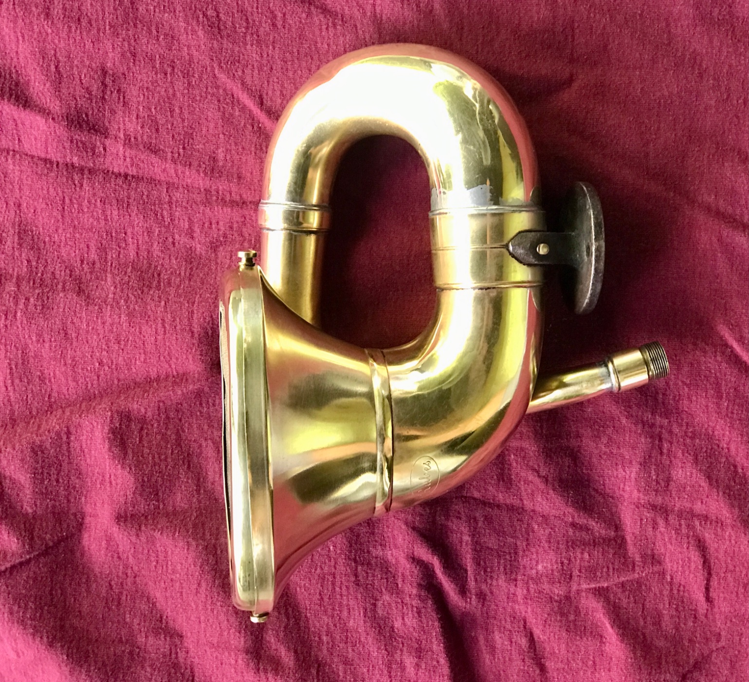 Original late 1912 - 1913 Rubes brass horn. Nice original condition. No cracks or serious dents, but two small dings evident. Correct round mounting bracket. Hard to find nice original. 300 includes shipping U.S.