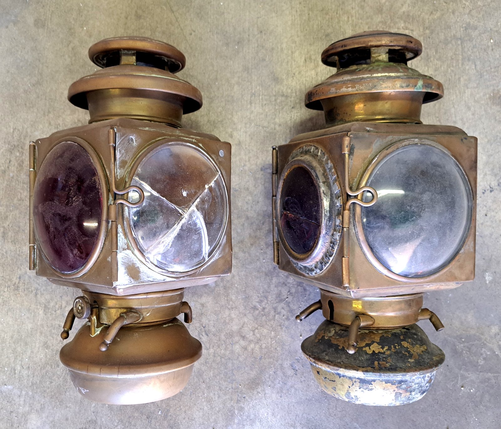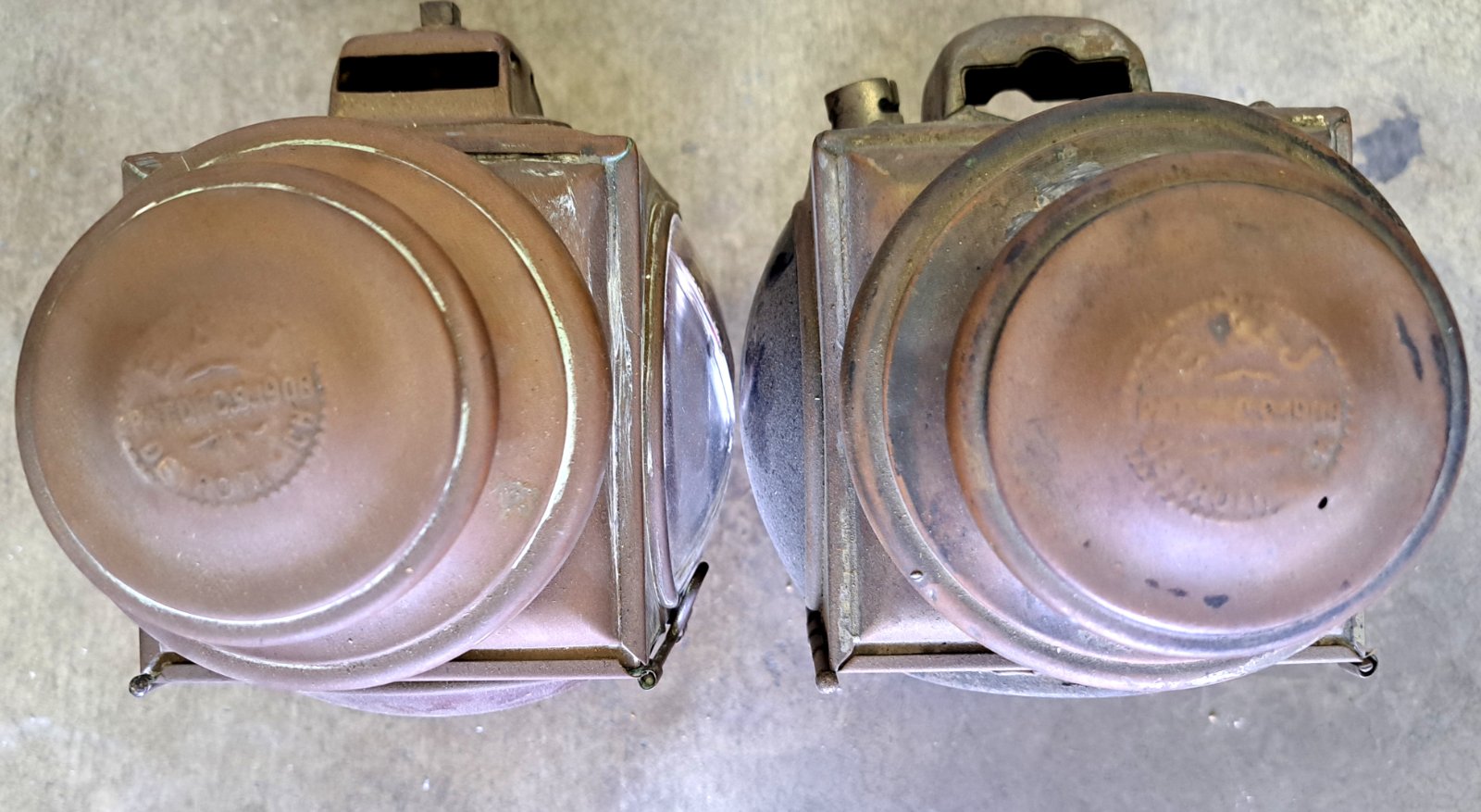Two E&J Model 1908 brass tail lamps for restoration. These lamps are sold as a lot (2 lamps). Price is $325 with free domestic shipping. Mark Chaffin (951) 805-0928