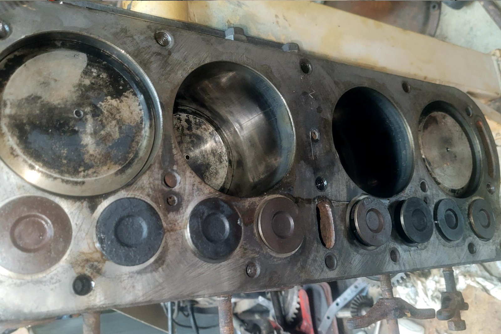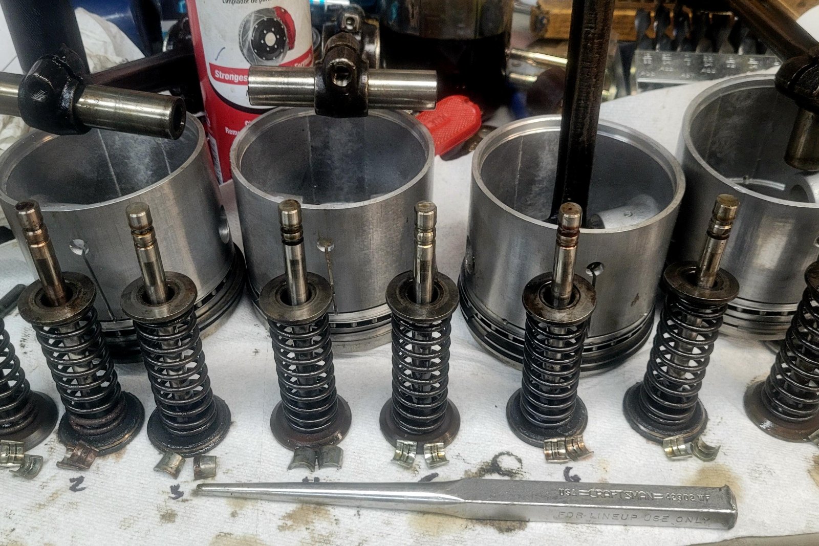 I started tearing into it to get it up and running, should have been an easy fix. When I pulled the head, found a lower milage rebuild with stainless valves, .060" over aluminum pistons, adjustable lifters, etc.