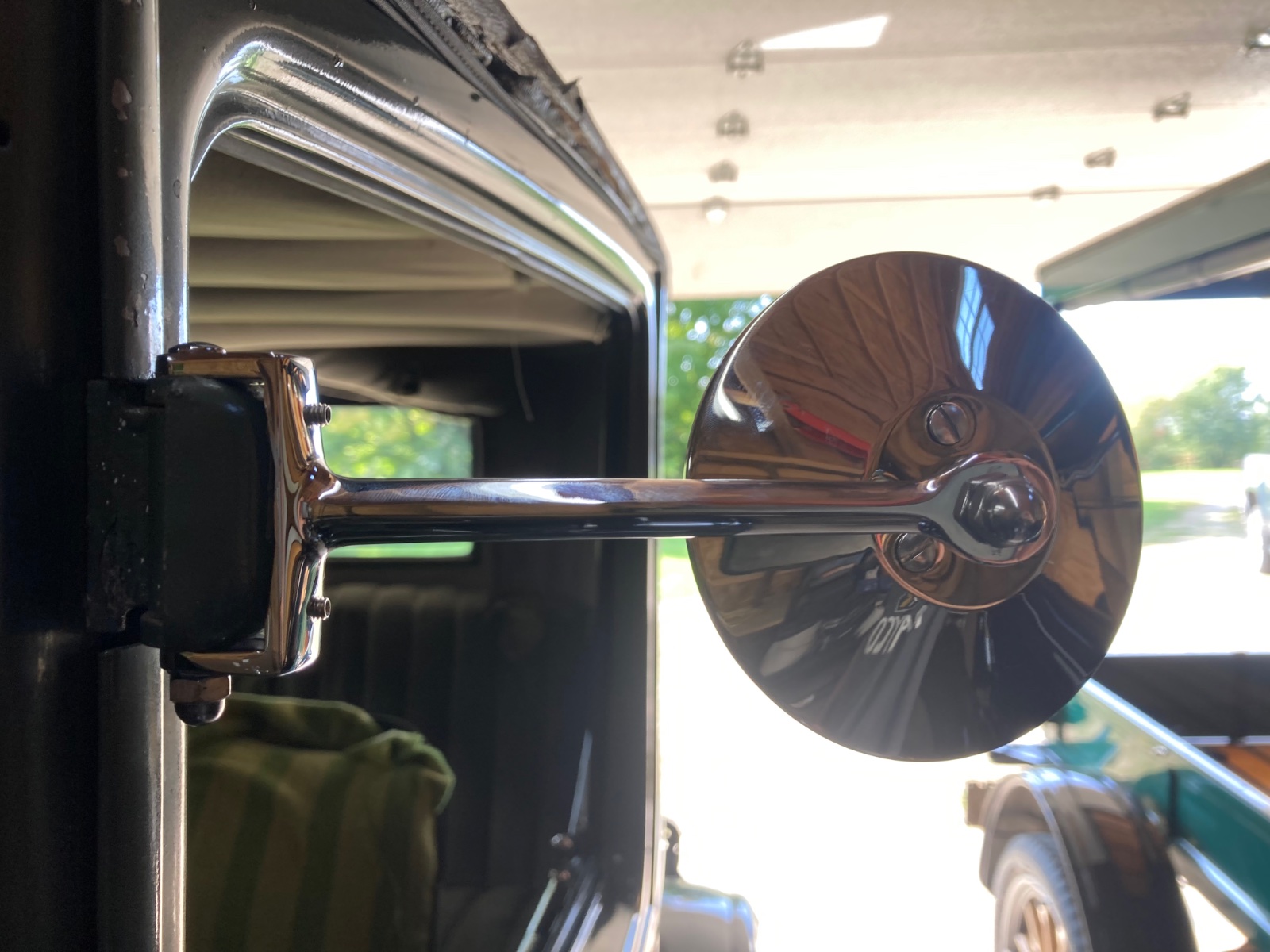 Update: I had talked to Dave at Chaffin’s and he was very helpful. Basically what he said was there is only one manufacturer making these mirrors and that they are made for a model A. They’ll fit on some T’s without modifications but not all. There were several different hinges on the enclosed closed T’s due to the different body manufacturers. When Ford came out with the model A all of the hinges were standardized. What I ended up doing was grinding the inside of the mirror arm as suggested, but stopped when it was getting kind of thin and ended up having to grind on the hinge also. It’s nothing that couldn’t be undone with some welding to build it back up if I ever needed to. So far I’m loving the look of this mirror.