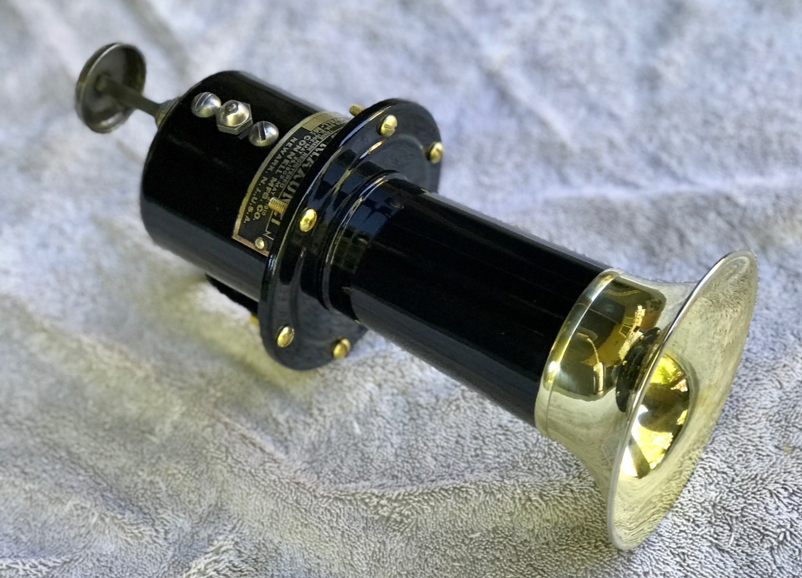Very nice original restored brass and black “Hand Klaxonet” ahooga horn. Nice paint and brass. Internals intact and operating as designed. Works great, very clean and loud. 300 includes shipping US.