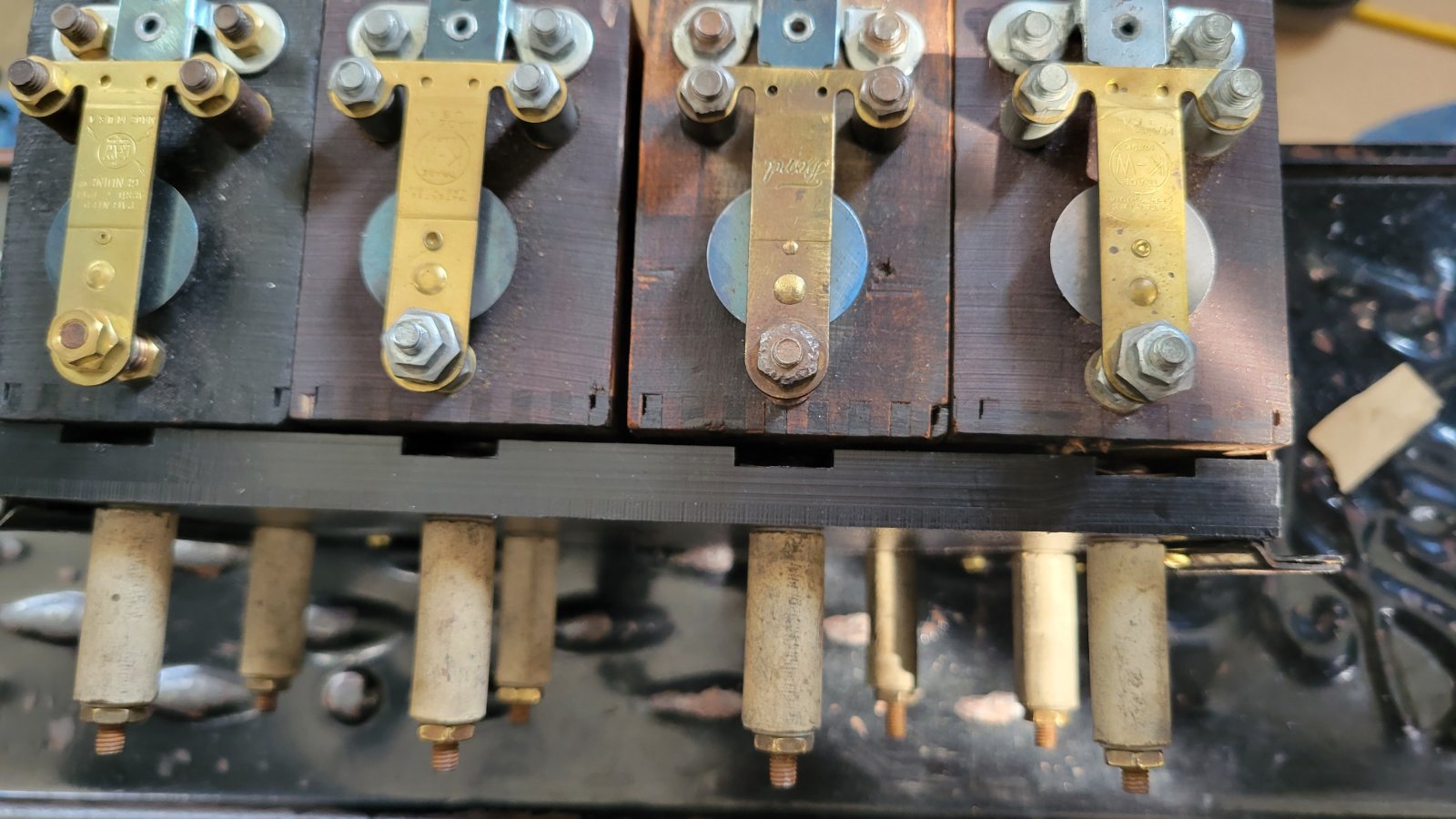 Father's Day here, and my son worked on the replacement generator for Henrietta. He has asked for input with his work in another post. This is a rebuild of a good patina matching unit for the old girl. New sealed bearings, undercut and machined commutator on a tested arnmature, new insulation on fieds leads and a new terminal wire soldered to the terrminal bolt, and all new brushes. Fortunately the insulation on the brush holder plate was undamaged and adjustment of the third brush will be easy.