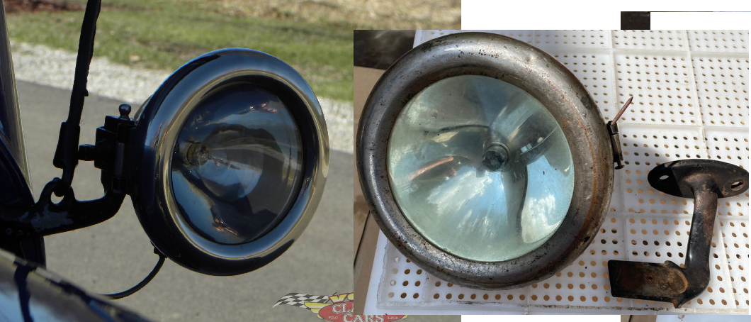 Some pictures of a 1914 Overland's side lights. The shaped looked good : hinge, socket & bracket location. But the profile shot. shot shows a more elongated bucket. The mounting is also different. Still could be an Overland but different year