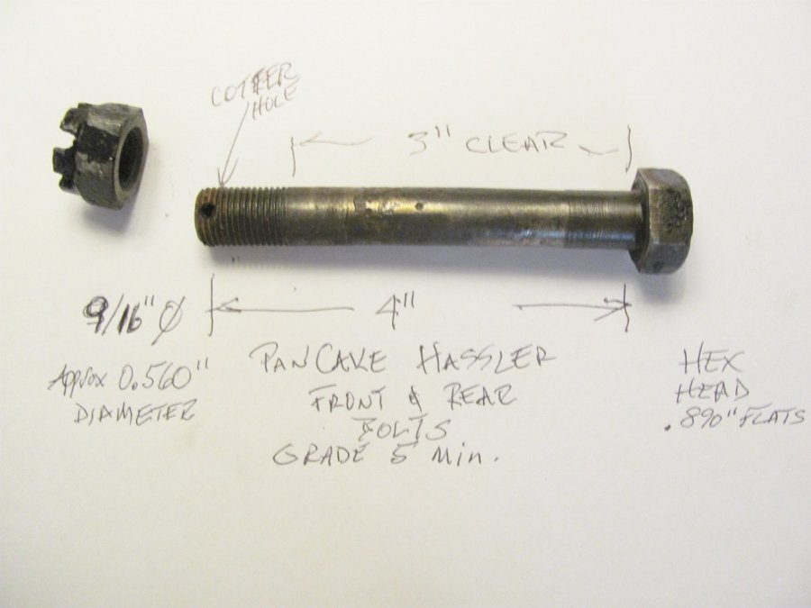 Ok so I received the bolts from Jay this afternoon. Thank you Jay. Upon looking over the bolts. The ends are of rough saw cuts and have no appearance of being heat treated and appears to be machined raw stock. I will do a Rockwell test Monday when I get into work and talk to one of engineers and try to figure out what material these are unless anyone knows what they are made of. I need to make a longer version for the double hassler. I may make a set for the single as well.