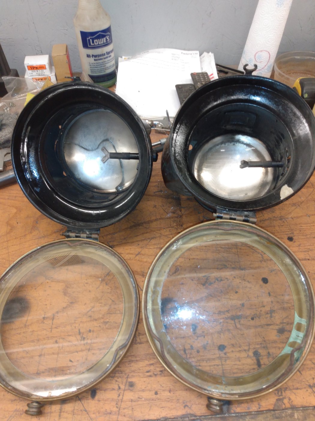 Fonts have a couple minor dings, doors have been replaced with dent free ones. One has a cracked reflector, the other is good. Both have glass and burners even the elbows. One bucket has small hole in the back. 475.00 plus shipping. ctleonard64@gmail.com