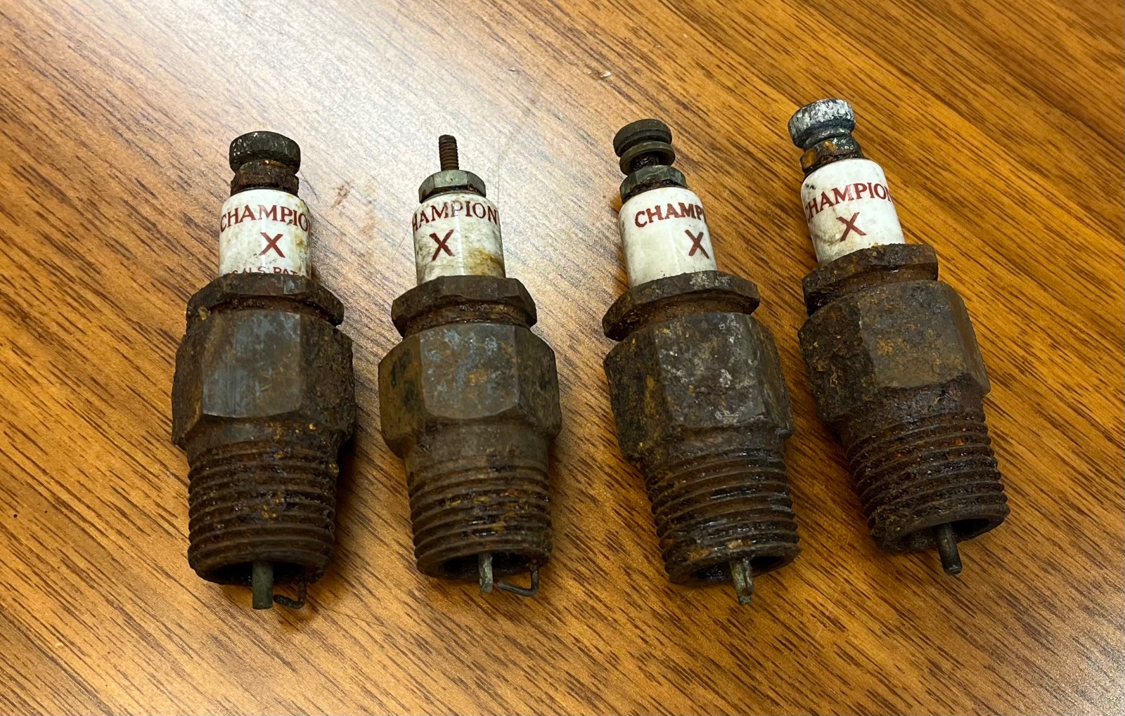 4 barn fresh, used early Champion X spark plugs with smooth insulators. 3 of them do NOT have “Pat Office” markings which I believe makes them pre-1915. The other one has the “Pat Office” markings.