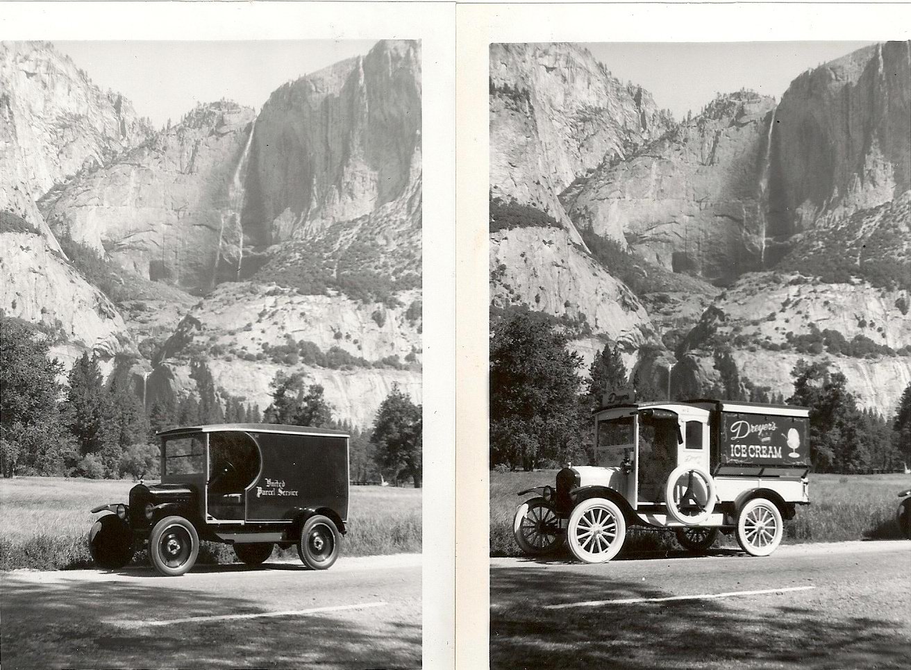 I've got nothing new here but to emphasize same gear up same gear down. Going back to the "olden days" on the MTFCA Catalina tours I drove my ice cream truck (weight around 2100 pounds empty) with Karen in the cab and our 3 daughters in the back, all the way down to Long Beach, around 400 miles each way, Catalina Island, and on our way home headed into Yosemite National Park for a couple of days, then back home. Never touched the band adjustments. I'm sure a few people behind me on the island hills were not happy as we traversed down some of the very steep grades. I started at the top of the grade in low band held that pedal down tight all the way down the hill to the bottom. Very slow but no band wear. As you can see in the pictures Tim Stangland in his original UPS truck accompanied us the whole trip