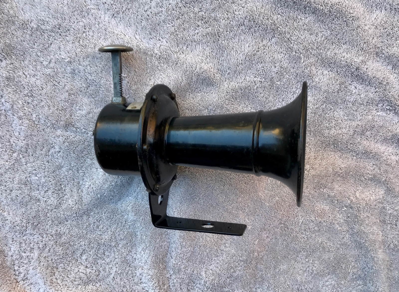Original Stewart Warner 114 hand horn. Excellent original unrestored condition, gears and internals nice and working smoothly with little to no wear. Original paint with chips and some imperfections and surface rust here and there but no serious pitting or damage. Mounting bracket is a replacement. Perfect for original car. Very loud and crisp sound. 240 includes shipping.