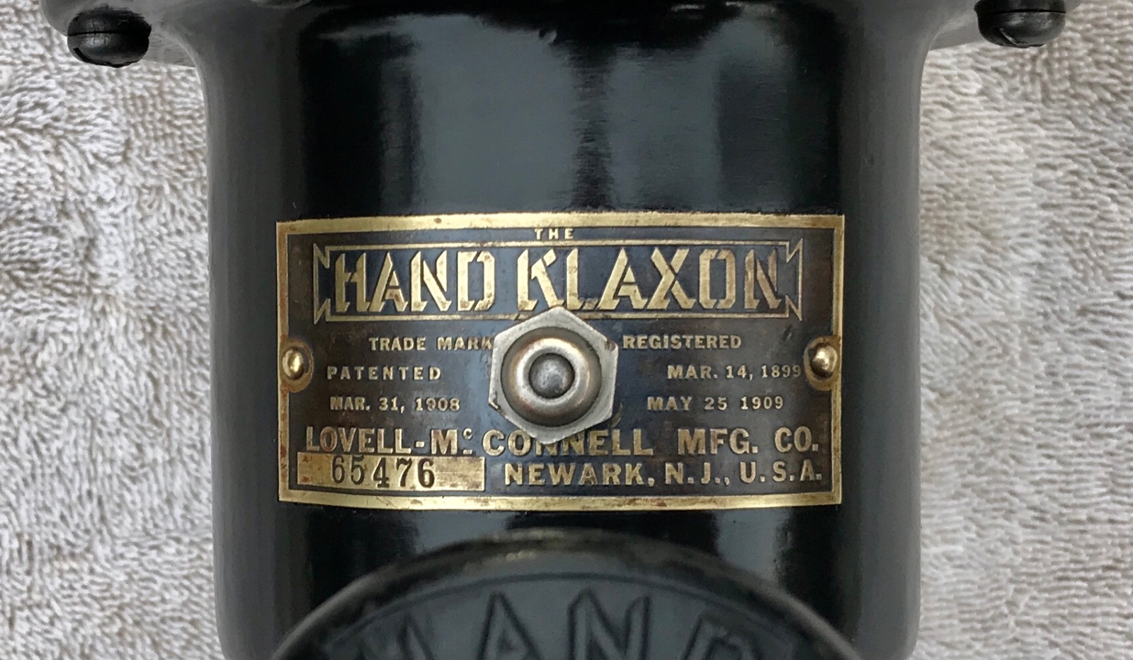 Original early Hand Klaxon manual horn. This horn is in nice working condition, and puts out a loud “Aaaawhooo!” when plunger is depressed. It has nice paint with a polished brass bell. The brass bell has seen some things in its 100 plus years lifetime, and has numerous small dings, bumps and scars here and there on the bell mouth, but still presents well and has a nice look to it. This horn is ready mount and use. Hard to find early brass ones, 275 includes shipping.