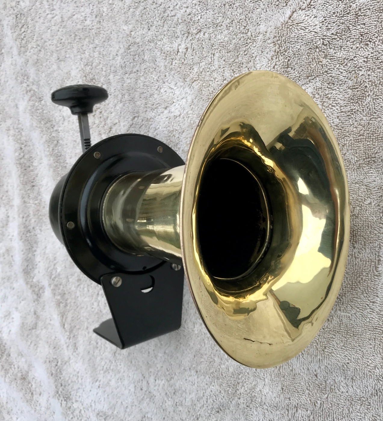 Original early Hand Klaxon manual horn. This horn is in nice working condition, and puts out a loud “Aaaawhooo!” when plunger is depressed. It has nice paint with a polished brass bell. The brass bell has seen some things in its 100 plus years lifetime, and has numerous small dings, bumps and scars here and there on the bell mouth, but still presents well and has a nice look to it. This horn is ready mount and use. Hard to find early brass ones, 275 includes shipping.