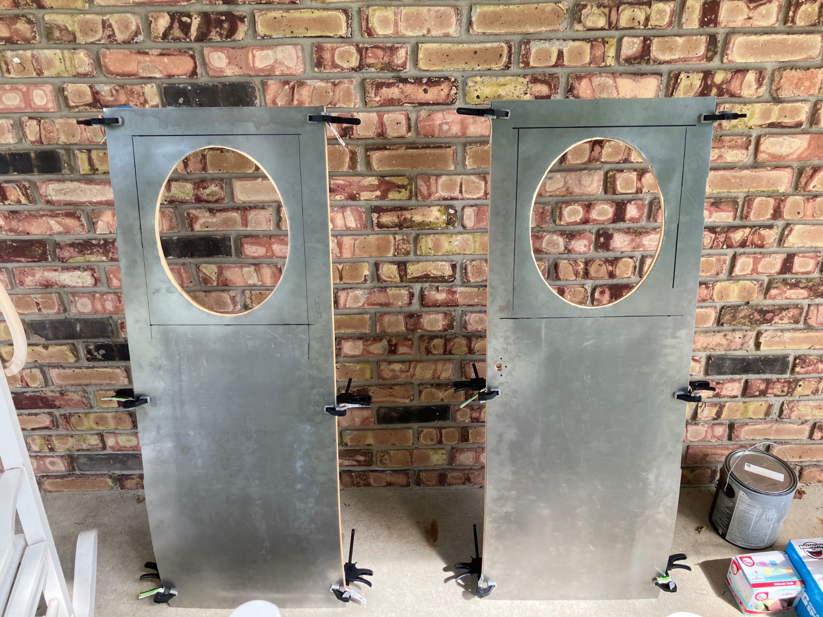 Mike, if you haven't already tacked the panels to the rear doors, it would be better to clamp a thin lath of timber over the panel with those same three clamps. This will help to load the panel more evenly against the frame rather than just at the clamping points.