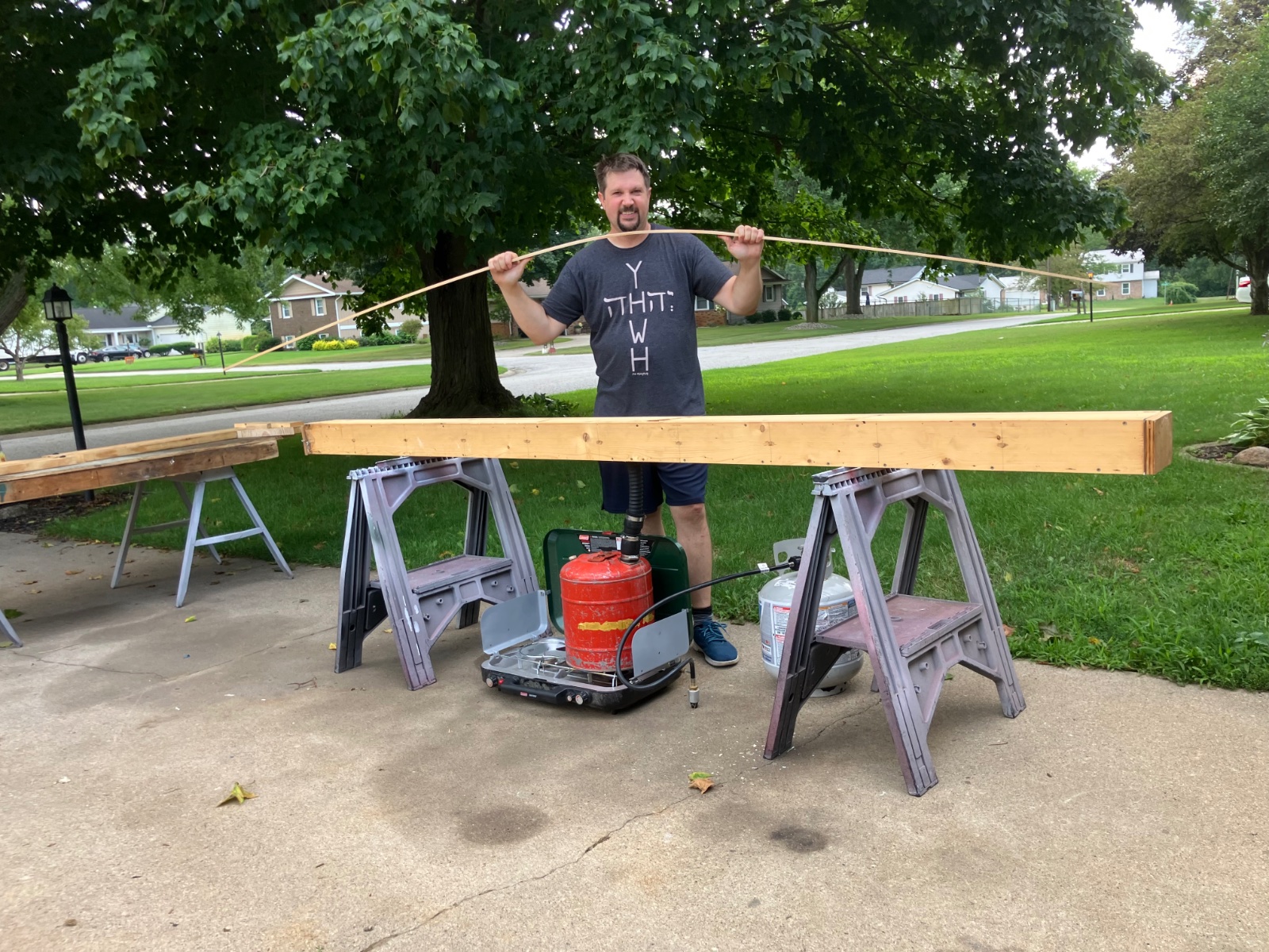 Started steam bending some of the slats to get the roof squared up. Everything worked as it should! I’ll have a video of the process soon.