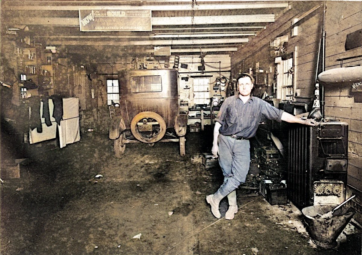 I snagged this from AACA forum. It was posted by TerryB and is of his wife’s grandfather and his auto repair shop in Pinedale PA.