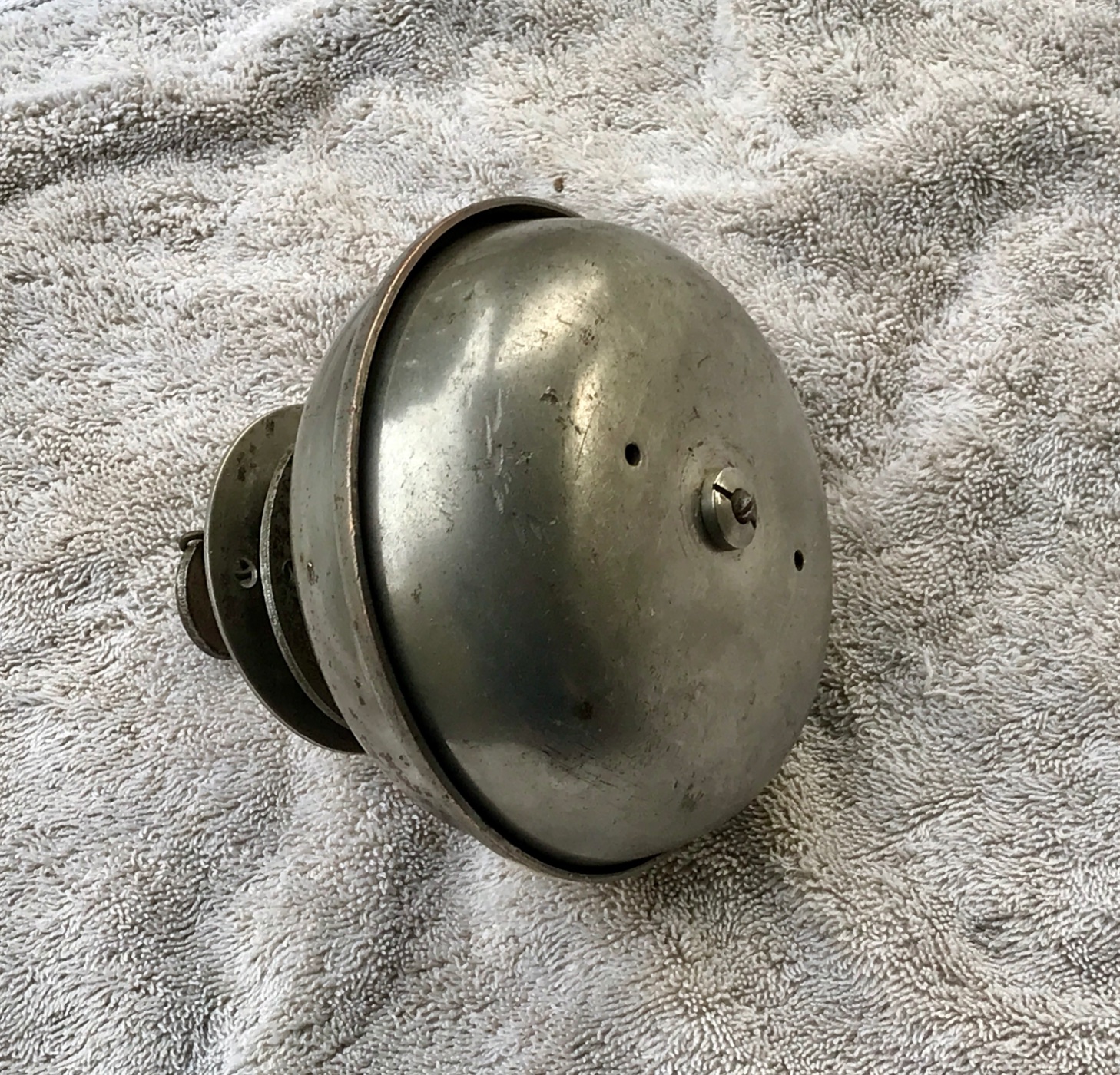 Original T era Bevin Bermuda carriage foot bell. Made in East Hampton, Connecticut. This original early Bevin is made of heavy nickel plated bronze/brass, and is very loud. It makes a very LOUD loud DING DONG when the foot plunger is depressed. Excellent internal mechanical condition, with some exterior patina, nicks, scuffs and speckling, and brass showing in the worn nickel plate in some places. No serious damage or dents, no cracks. It works as designed, and attaches under the floorboard with 4 screws and the plunger above the surface. Hard to find T era bell that is ready to mount and use. I have one on both my Ts, lots of fun and wakes up the dead. 260 includes shipping.