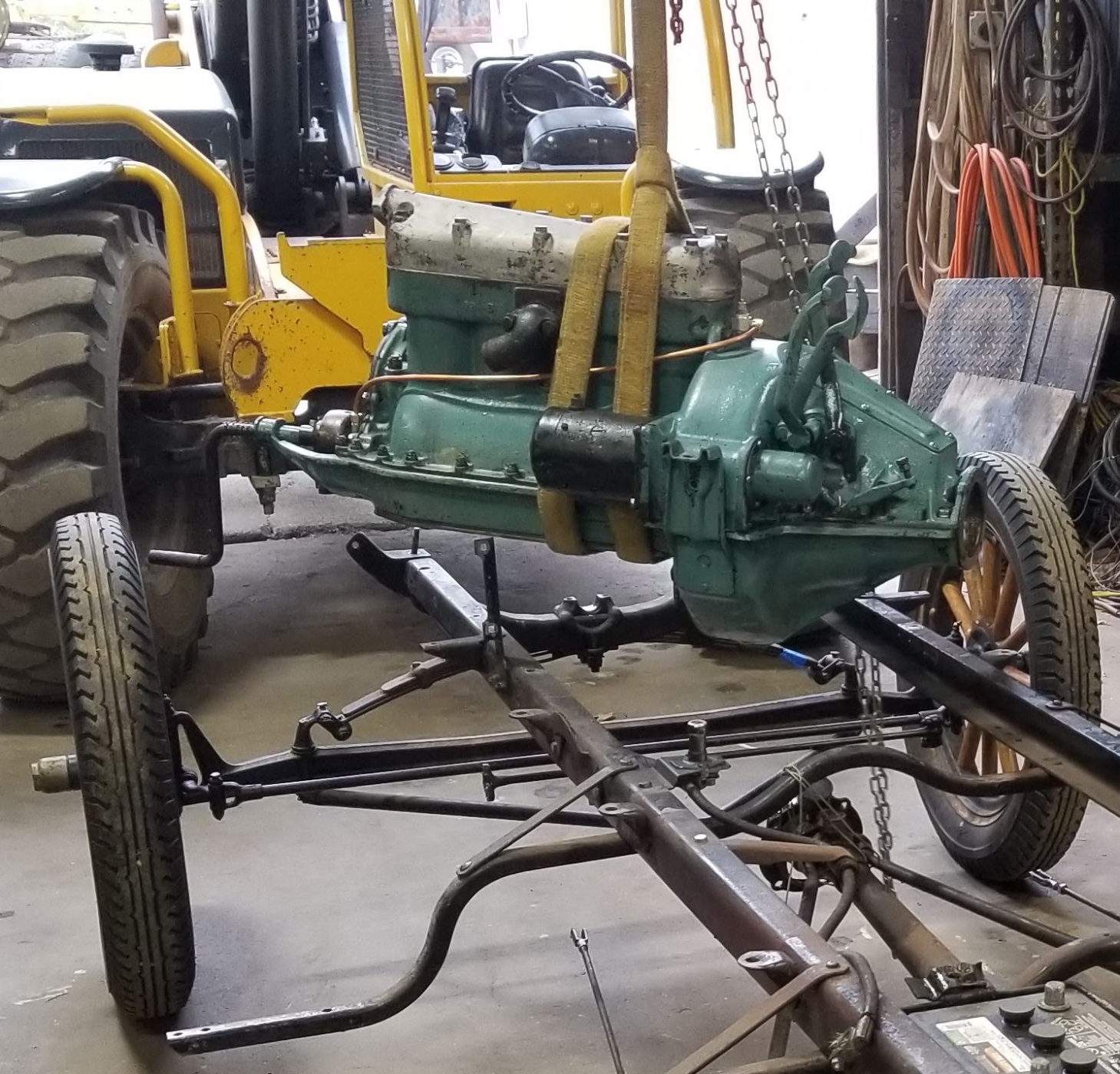 The lifting prongs were used on the assembly line in the Ford factory, several old films show them in use and there are lots of old photos of old workshops where you can see them.