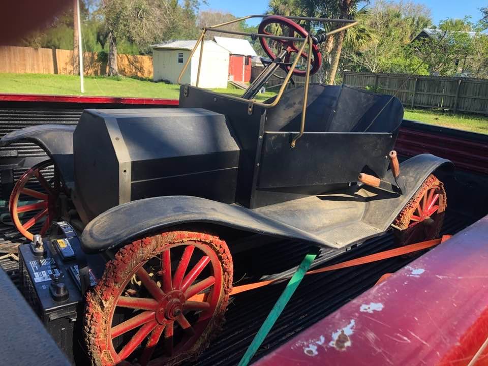 Here are a few pictures of my Model T Go cart. While our family was driving through Bainbridge, Georgia on vacation in the early 1964, my Dad happened to see it at a filling station as he was driving over an over pass. He took the off ramp for a better look and wound up buying it for $50.00. We drove home, 316 miles to Brandon, Florida with it tied down to the roof of our 1957 Ford Fairlane. At 12 years of age, I got it running and restored it to the best of my minimal experience and it provided me and the neighborhood kids with many years of fun. The last time I drove it was in 1970 when I bought my 1926 Model T coupe and began spending all my time and money restoring that. I turned 70 in November and plan to, one day, restore the go cart to mint condition if I am able to live that long. I hope the pictures help. The Briggs and Stratton engine and running gear are original and can be easily restored to running condition. Jim Patrick