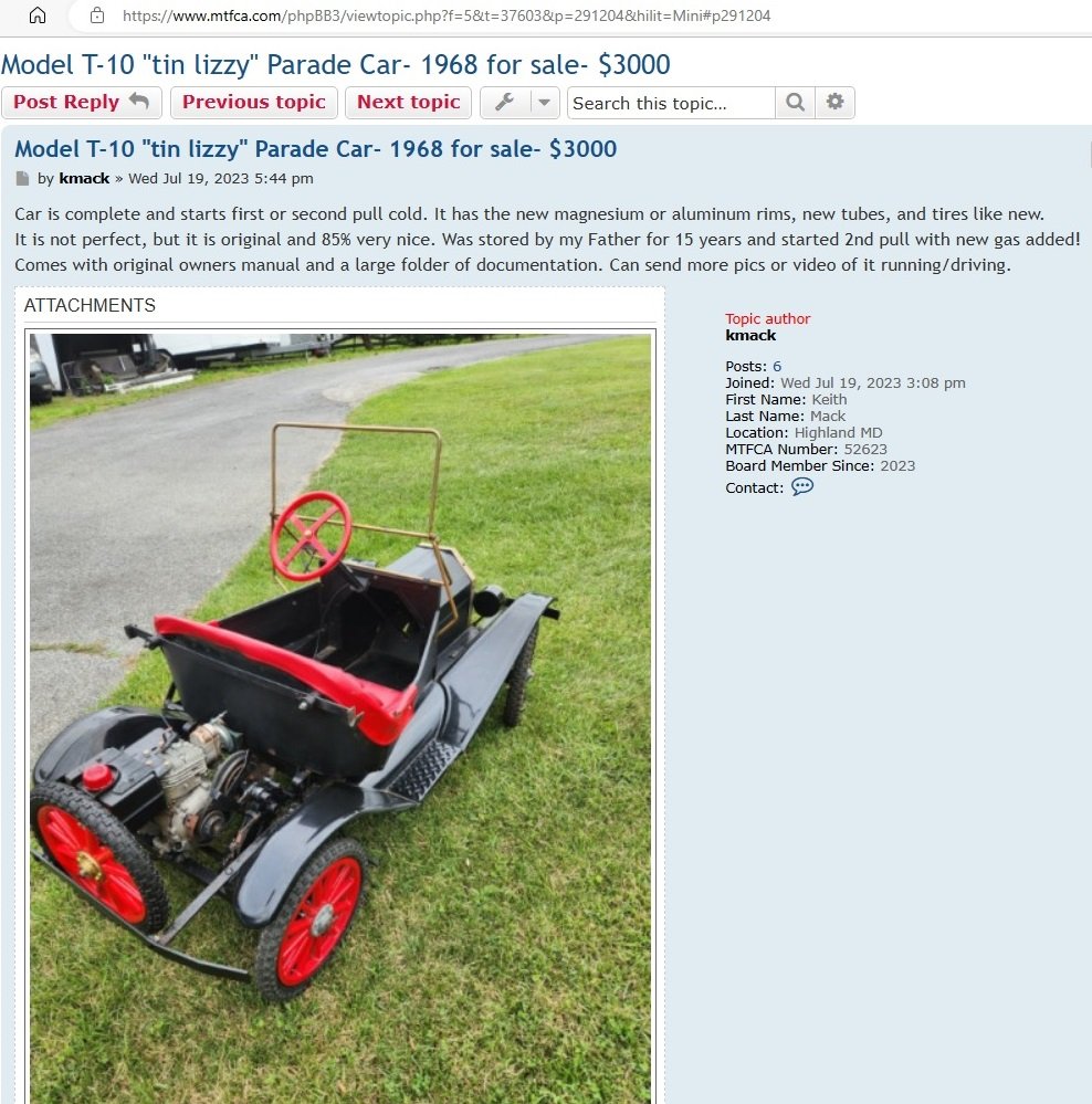 - * REQUIRED* Type and Year of Model Ts owned: 1910 Torpedo