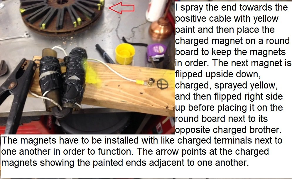Well since everybody seem to be showing theirs I might as well also. I charged my magnets after first demagnetizing them it seemed to work much better that way. Got em all charged up and are in my newly rebuilt engine and running super. I used a 36volt golf cart battery charger for juice. Jim