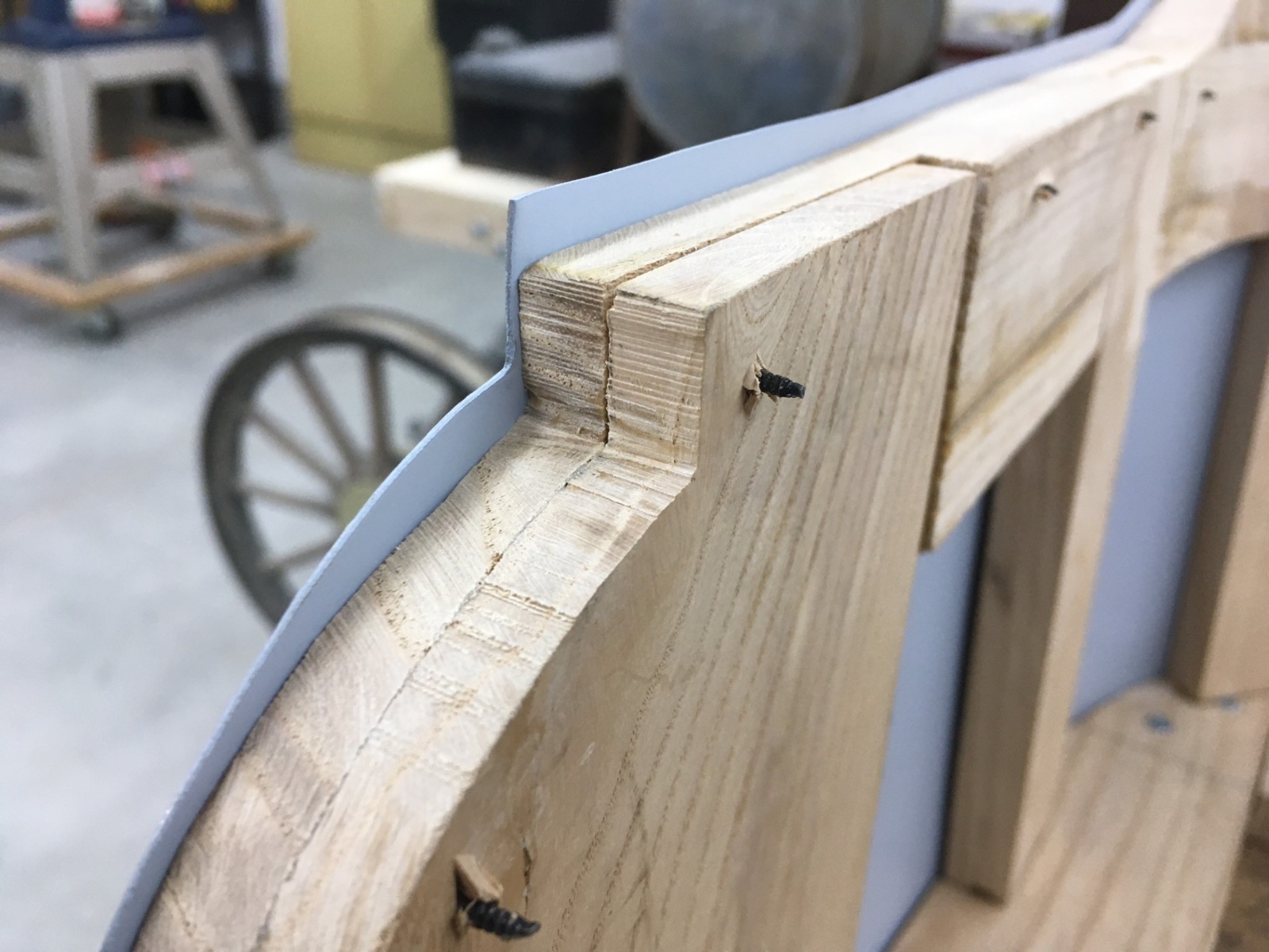 Took the sheetmetal off and sealing the woodwork with black lacquer. Now waiting for plates from the steel guys.