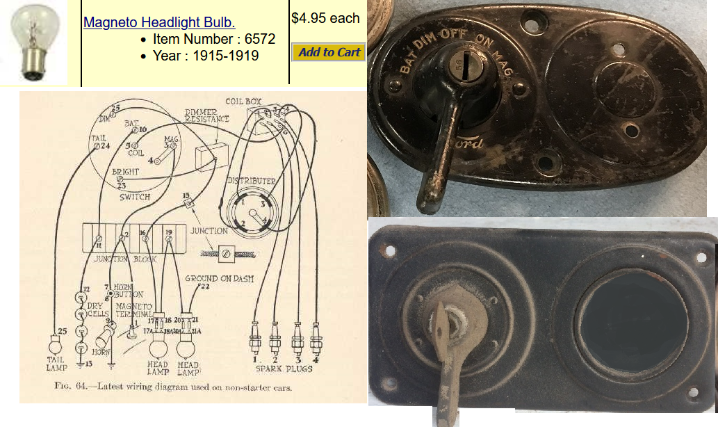 Non-starter cars (no generator too) depended on magneto. A dimmer was located behind the blocking plate where the Ammeter would have been. Models with the ignition switch on the coil box had a dimmer on the firewall --