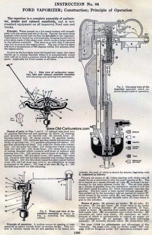 Dan, here's a picture I have on hand of rthe vaporizer on my 27 (Canadian) Touring. If you still need more detail, let me know and I can get more pictures. I believe that the rod going from the choke lever to the mixture rod is original Ford part (6299), while the wire going out through the rad cover is just a piece of copper wire that I used to replace the missing one on the car.
