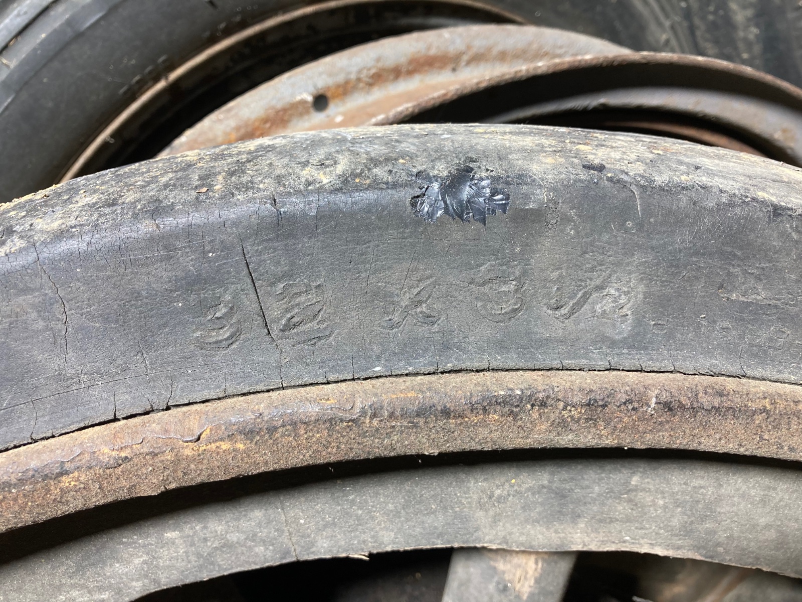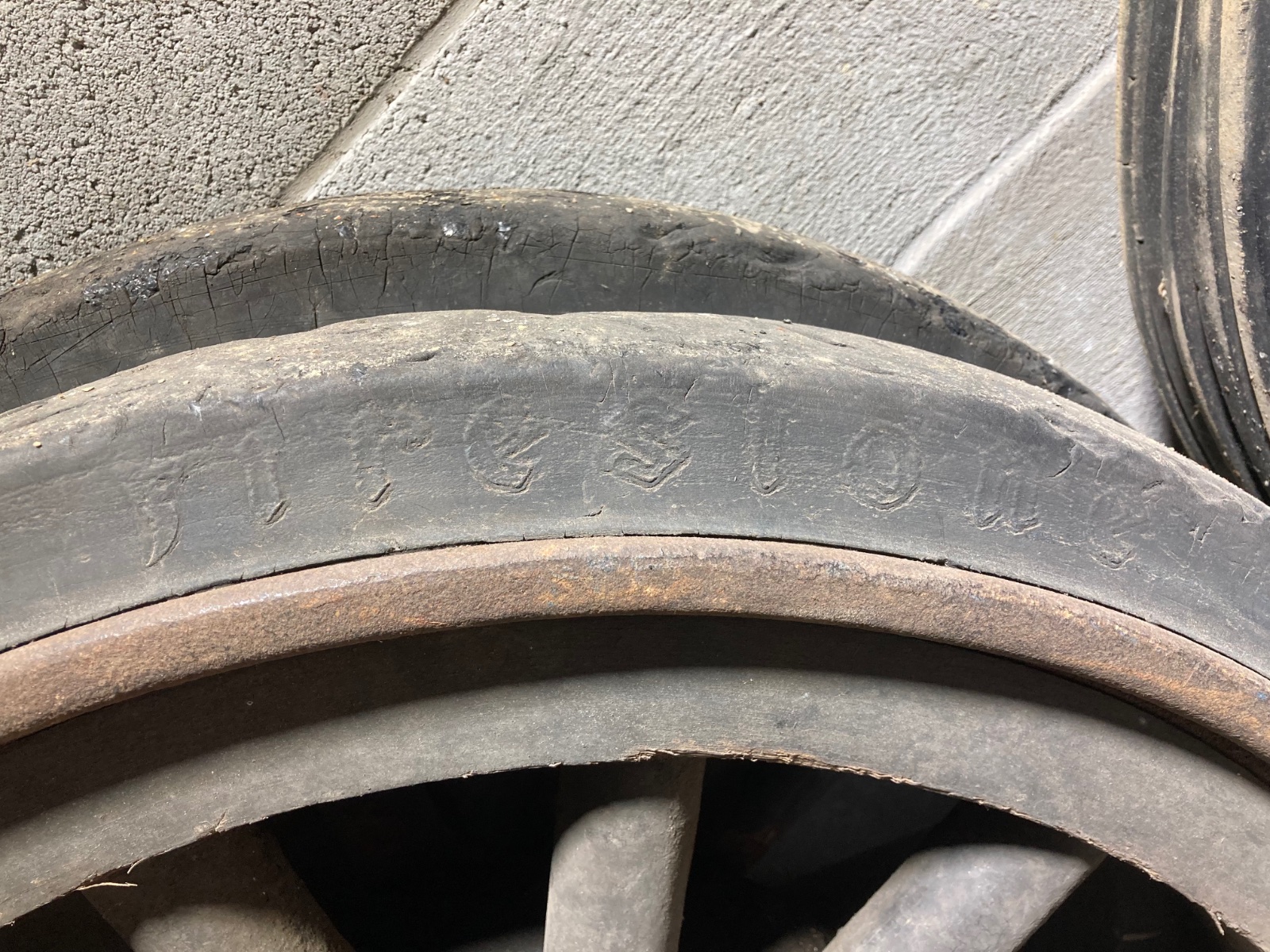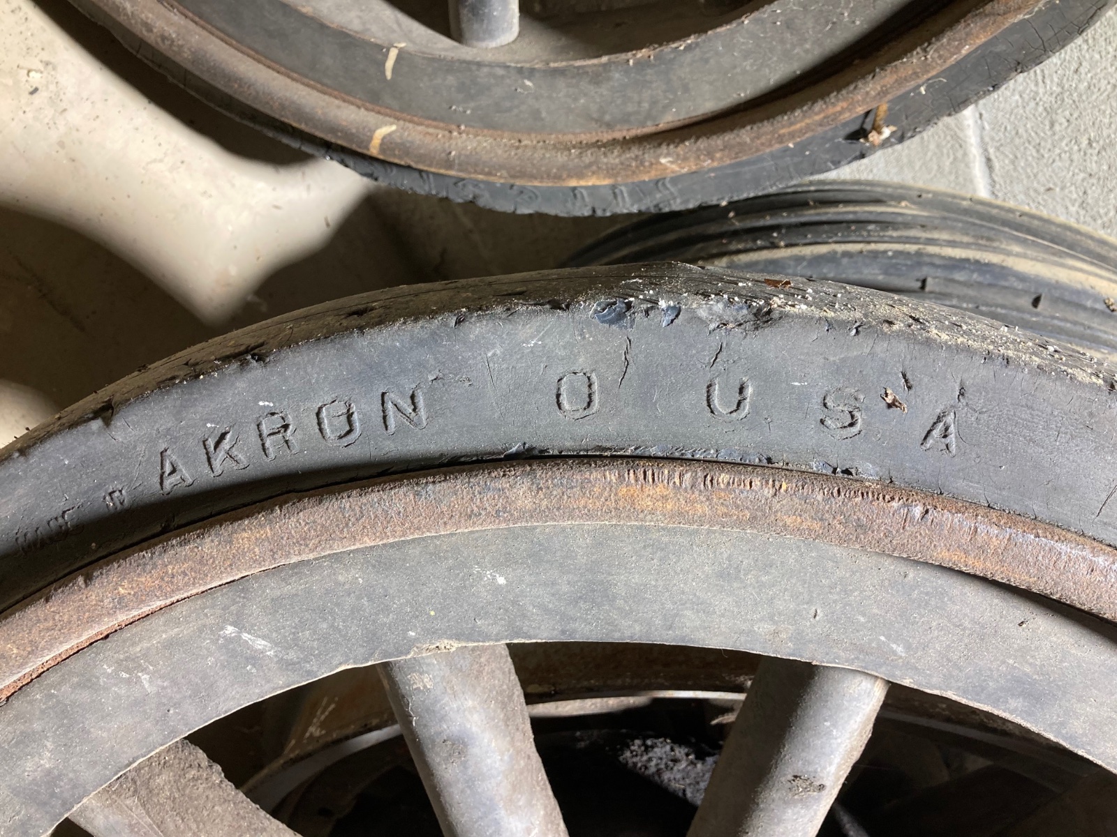 For sale: 32 x 3-1/2 TT solid rear wheels. Rare to find in this condition!! Made by Firestone in Akron Ohio. One wheel is complete and one is missing the hub and brake drum. The wood in both wheels is very very nice and solid, no rot at all, not loose either. Both are still in what I believe to be original paint. The rubber is not dry rotted and is in good condition also. Great addition to your heavy hauler TT or as an accessory to your model T shop! Located in north east Ohio, local pick up only $600 for the pair.