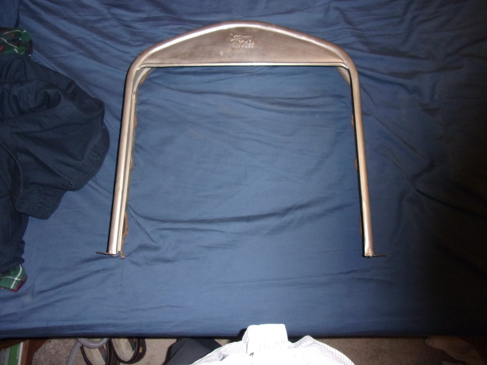 I also had three badly cracked brass rims with very little nickel remaining on them. I didn't have any silver solder handy, and the local welding supply said they didn't have any, so being in a hurry, I took the worst rim and tried my hand at welding the cracks with standard fluxed brazing rod. Anticipating the difficulties from past experiences, I found the right balance of backing support and temperatures to get good results. I had to replace a couple "sudden puddle" holes on that first one (the reason I worked on the worst one first!). But I was doing pretty well by the time I started on the second one with my scrap steel forms I made to support the work area. Depending upon circumstances (seriousness of the crack, location of rivets etc.), I usually C-clamped (small C-clamps) the support forms in place on the outside of the rim. and welded from the inside. Excess material could be ground off on the inside for fit, but since it was not to be seen once installed, did not need to be finished nicely. With the support from the steel forms on the outside, usually the outside needed only a quick filing with a fine sharp file followed by fine sanding.