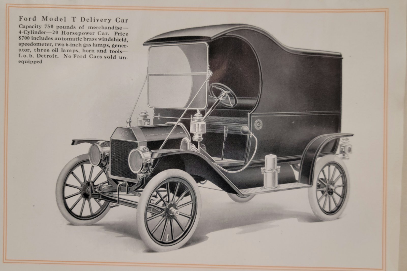 This link to Cimorelli's Digital Model T Library has several pamphlets about the delivery wagon https://www.cimorelli.com/mtdl/1912/default.htm The first set of boxed brochures have smaller images than the others. Doubt if the Brochure covers were the logo --