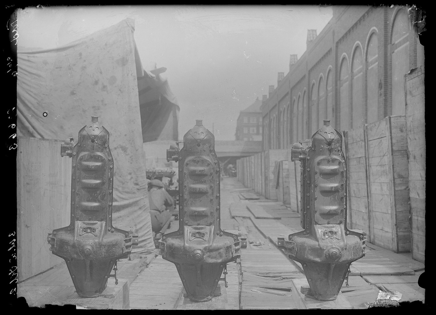 Crates stacked in the factory yard upon arrival from the habour - April 1920