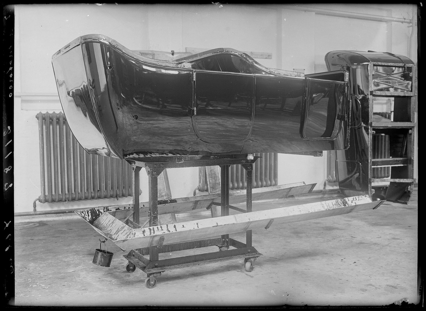 Touring body in a rig on wheels ready to be pushed to the assembly line - february 1923