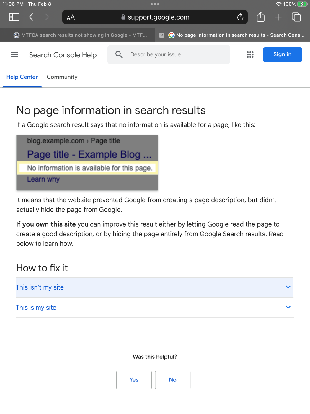 Has anyone else noticed that Google search results are not showing information current and past from the MTFCA site?
