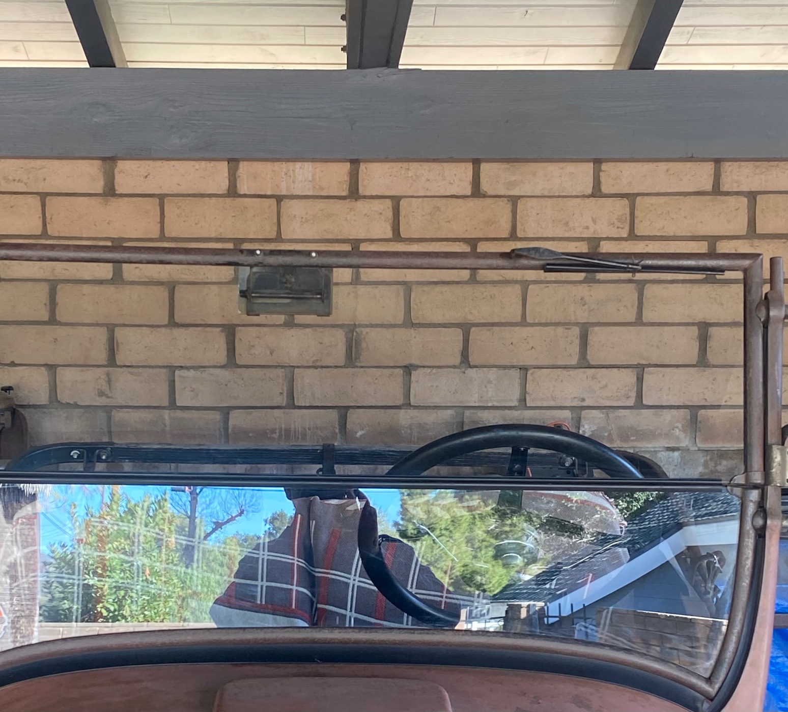 I ask this because my car has always had the rearview mirror holes offset to the driver's side, but I always used a clamp-on mirror which I placed in the center. After refurbishing the upper windshield frame I proudly installed the proper (albeit reproduction) rearview mirror and now the windshield wiper handle bangs into the mirror. Interestingly enough, during the work on the frame, a second windshield wiper hole appeared on the passenger side.