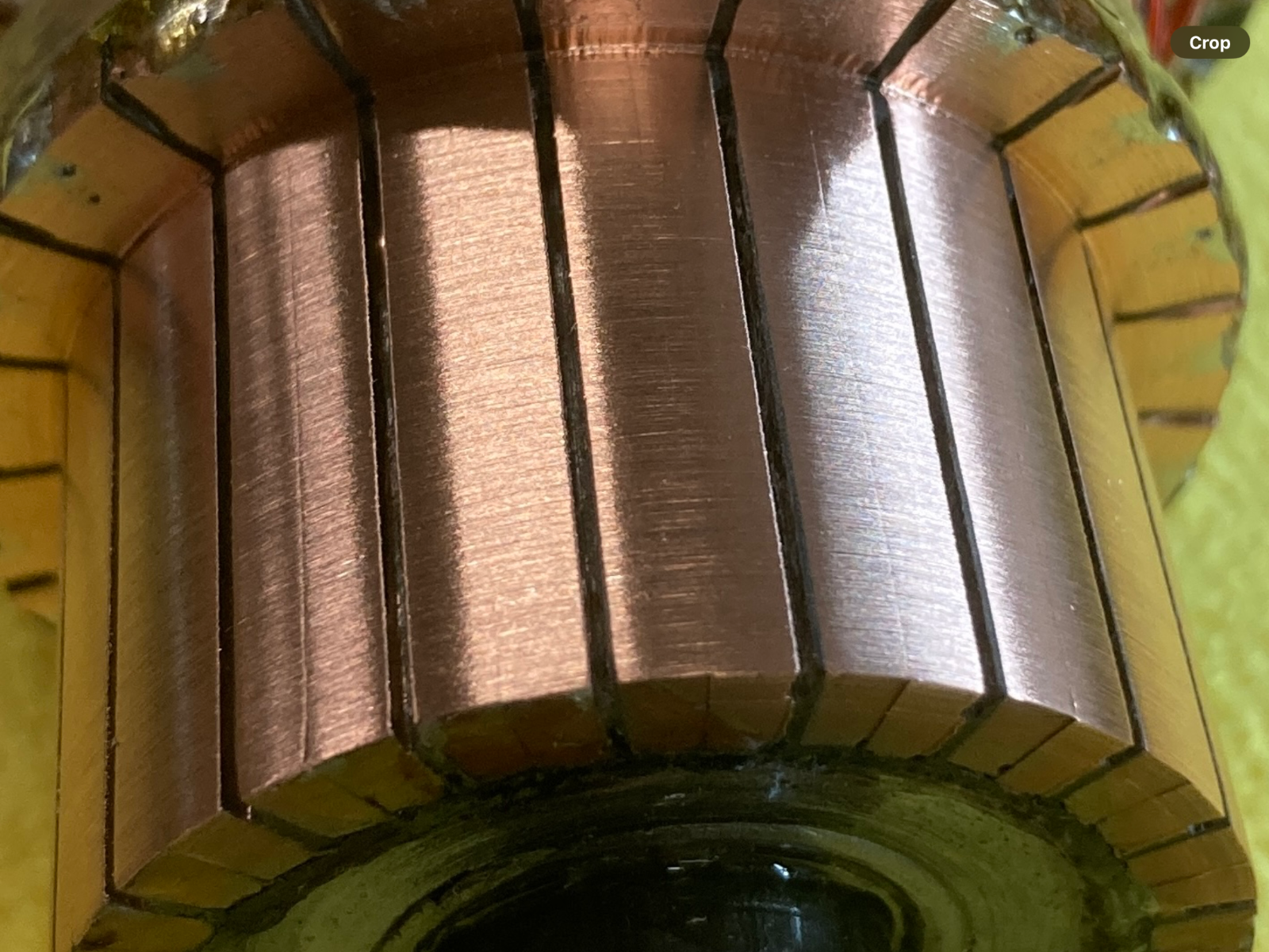 I personally see a MAJOR problem with the commutator on your armature. Here's a closeup pic of what my finished and rehabbed commutators look like on a generator, and the starters are treated exactly the same, no different. They should look like this once rebuilt. This is ultimately where ALL the energy is delivered from the battery to turn the armature and it's a critical part of the rebuild. If you don't have a lathe and a way to cut the mica on your armature, youre better off having someone do it for you or just buy a rebuilt one. Your armature in its current condition is one of the worst I've seen, and like Ron, I've seen 100's. Bad armatures account for many problems on both starters and generators and one symptom is slow/erratic turning.