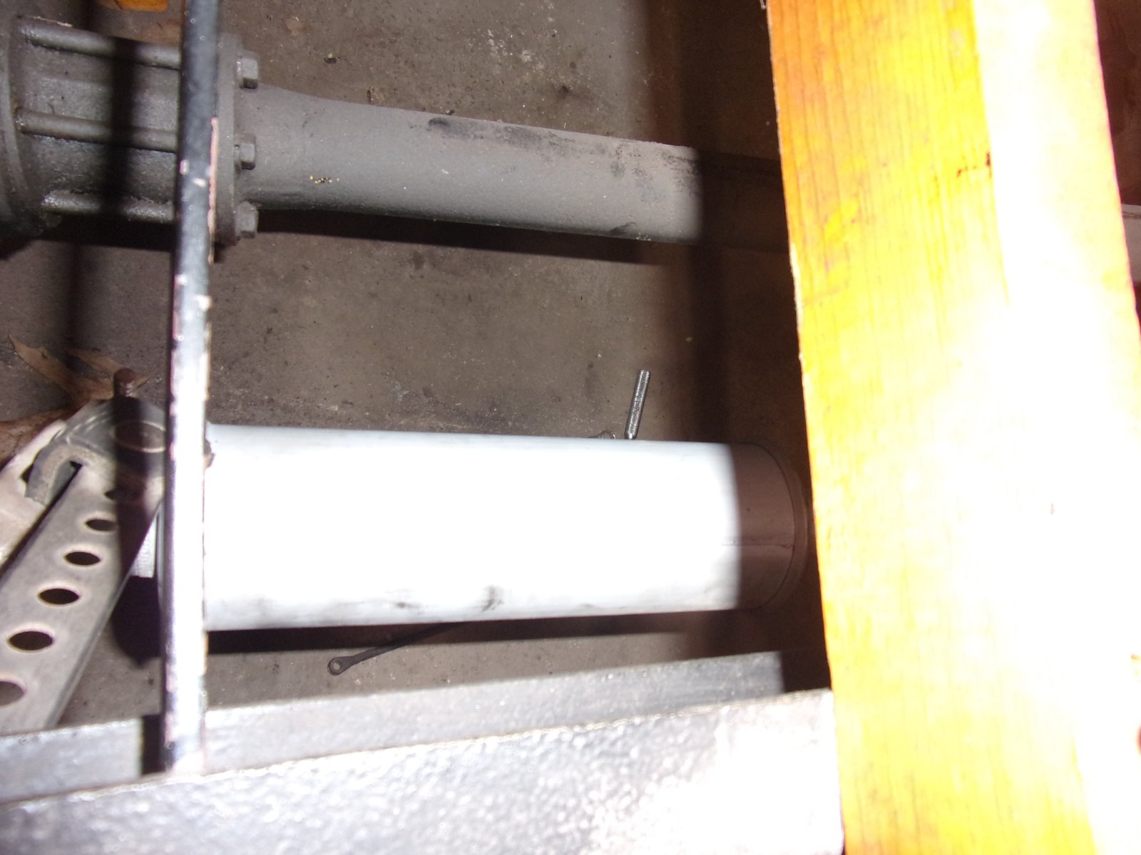 Bubba had a Bubba muffler on the 27 depot hack that was rotten, so off it came, the exhaust pipe and packing nut look good. So I pulled a cast iron muffler off the shelf and two nuts and bolts. Slip the cast iron muffler on and go to bolt up and only one bolt hole in frame. The lone hole almost fits the rear mount for the muffler, if I trim 1" off the exhaust pipe, I'll be good. But no front mounting hole and no feel that one was ever there and welded close for some reason.