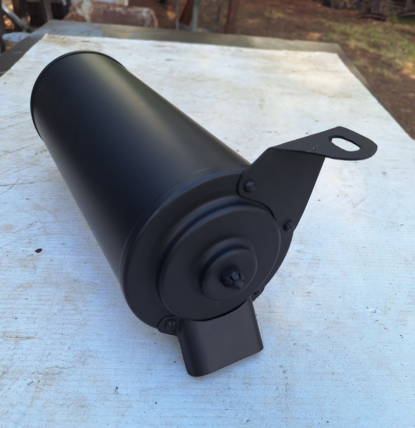 If your hack is a parts salad, just hang a tractor muffler and use this clamp. It allows you to attach the muffler correctly to the exhaust pipe, and this changer has some flexibility in it as opposed to a rigid fixed muffler. Use any tail pipe you want, especially if you want to direct the exhaust downward