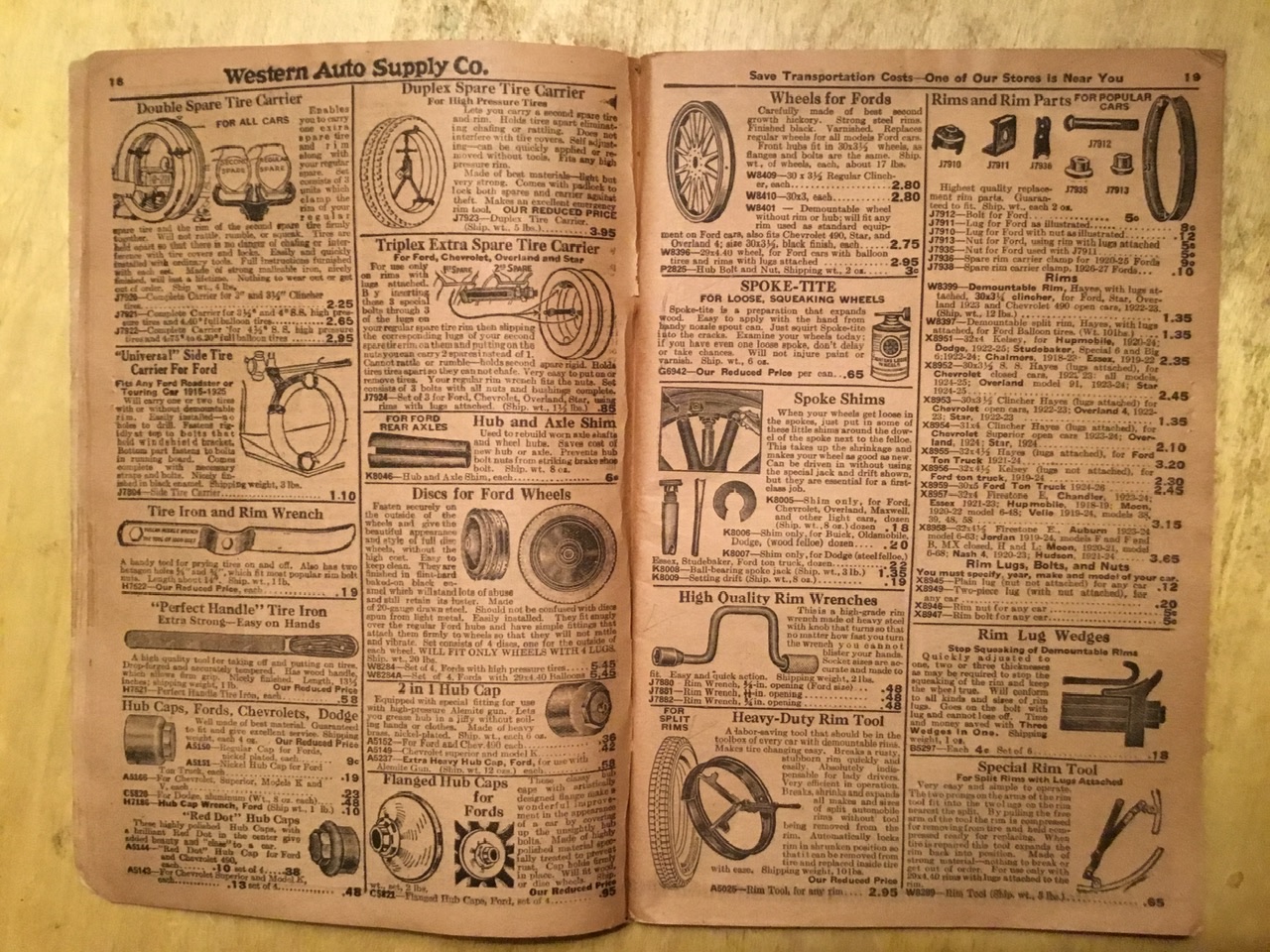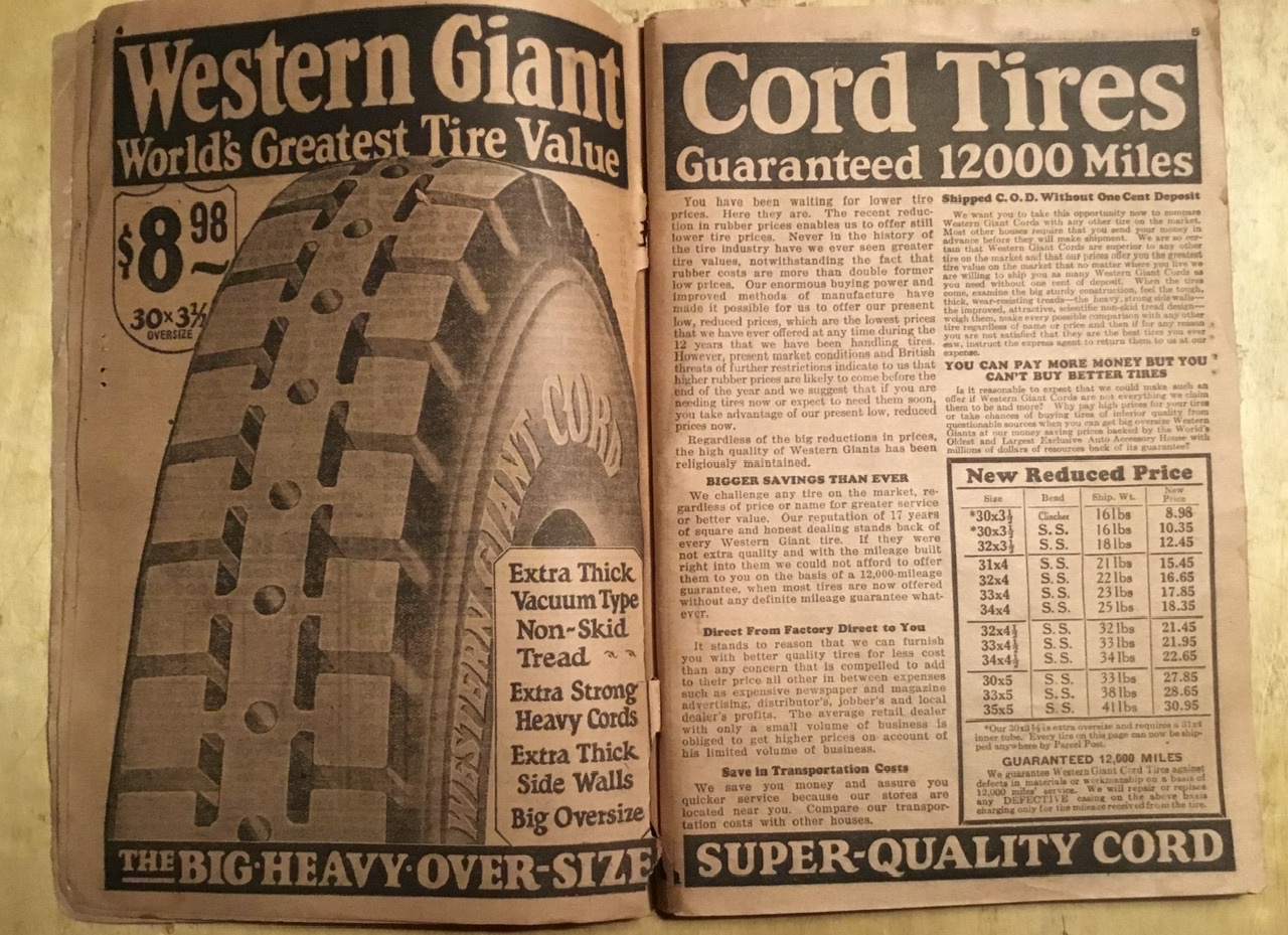Well, I got my 1926-‘27 Western Auto Supply Catalog. It has some amazing items crammed into its’128 pages at some incredibly low prices (low for today). Rather than posting random pages in trying to anticipate what you’d like to see, I am taking requests on items you’d like me to look up and post pictures of the pages of items you are interested in. Since I am working all day maintaining my properties, I will log onto the forum tonight and post your requests until there are no more. Jim Patrick