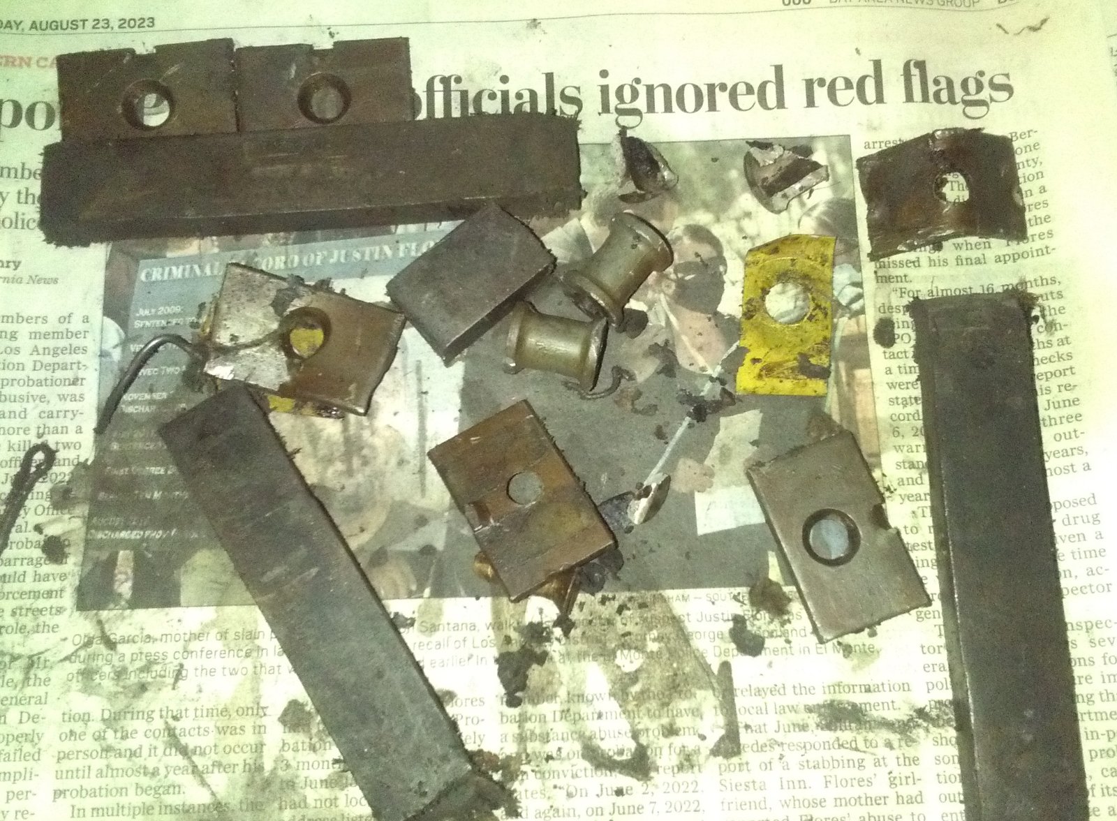 Actually no, but when I went to snap the picture I just could not resist leaving the newspaper headline there! That was just the chunk of newspaper we grabbed when we took the shrapnel out of the pan. Perhaps there IS a higher power out there somewhere eh?