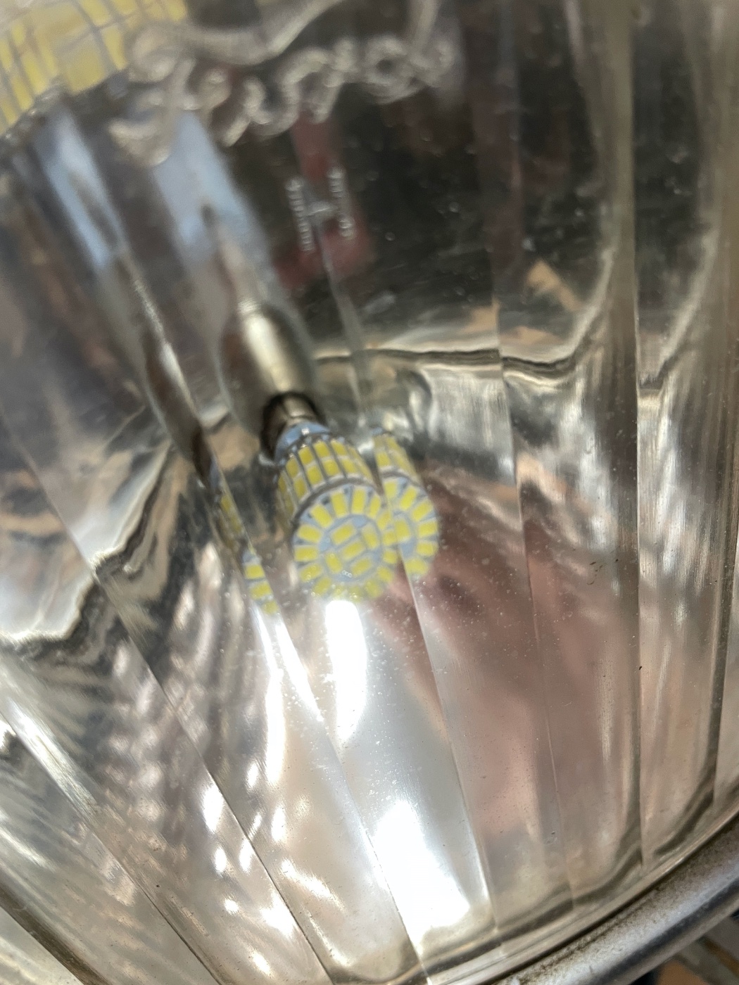 The filament bulbs light source is adjustable to be at the focal point of the reflector for optimum light distribution. This is necessary for any type of bulb dependent on using the reflector. Its easy to see that the Focused LED lens is well beyond that and the reflector is just capturing light emitted from lens glass. The picture below shows the difference in how the headlight reflector illuminates the Headlight lens making the Filament bulb look brighter. So these would be better for those wanting daytime running lights vs night driving. --