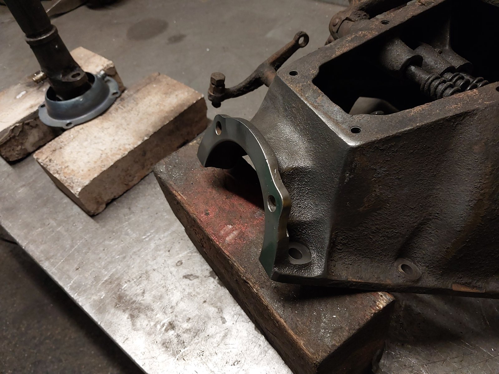 The second was not a stressed repair. The shop elected to braze two STEEL patch panels in place, one to fix the skirt, and another to close the slot up the bore. The bore on that cylinder was then sleeved. This fellow was a god of welders. He had a five foot diameter hearth of fire bricks on a steel bench. On that he had an igloo of fire bricks stacked up on top. In the morning, he'd open up one side of the stack to take the part which was to be welded and re stack the fire bricks. Then he'd fire up a large gas rosebud burner which heated the whole furnace through a hole in the base of the hearth. Come late afternoon, he'd turn off the rosebud, remove just enough bricks in the igloo to give access for the repair, and have at it. When he finished the weld, the igloo was reassembled, the rosebud re-lit and turned way down, and left that way until he came in to work next morning. He had a wonderful reputation for doing the impossible!