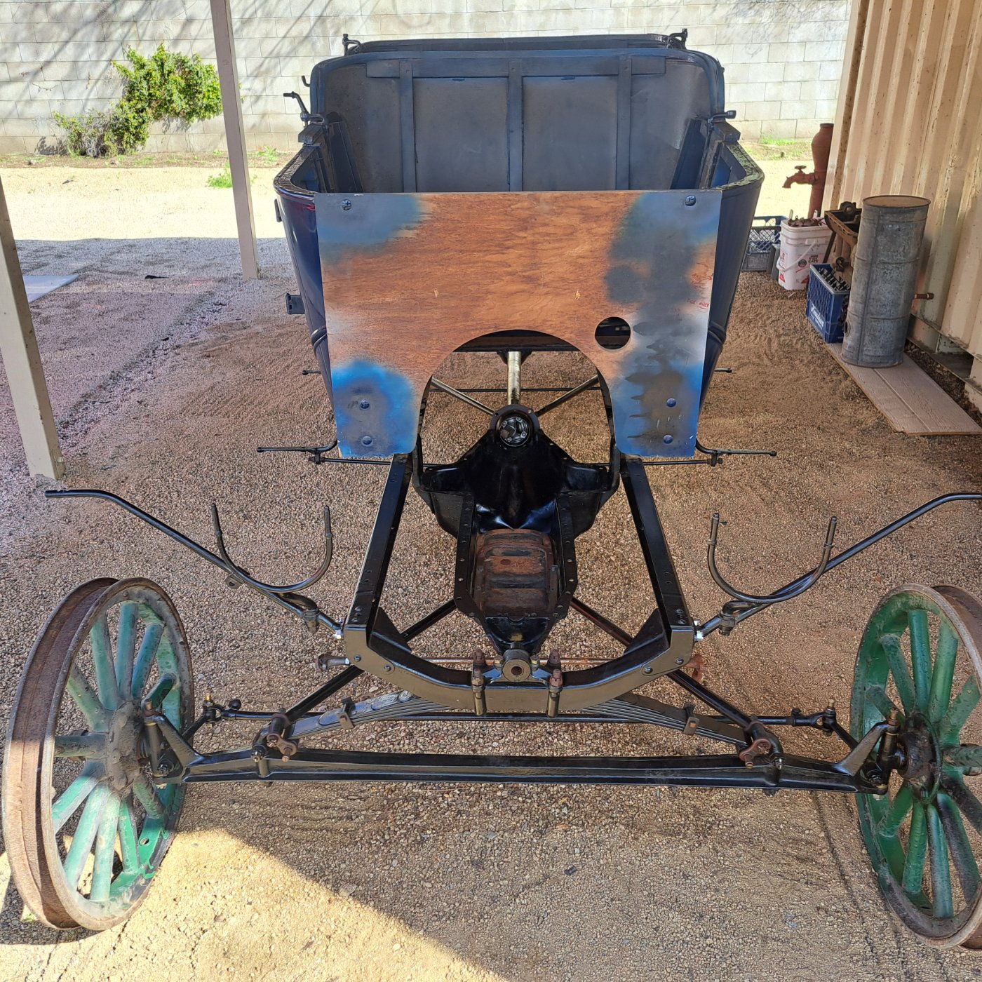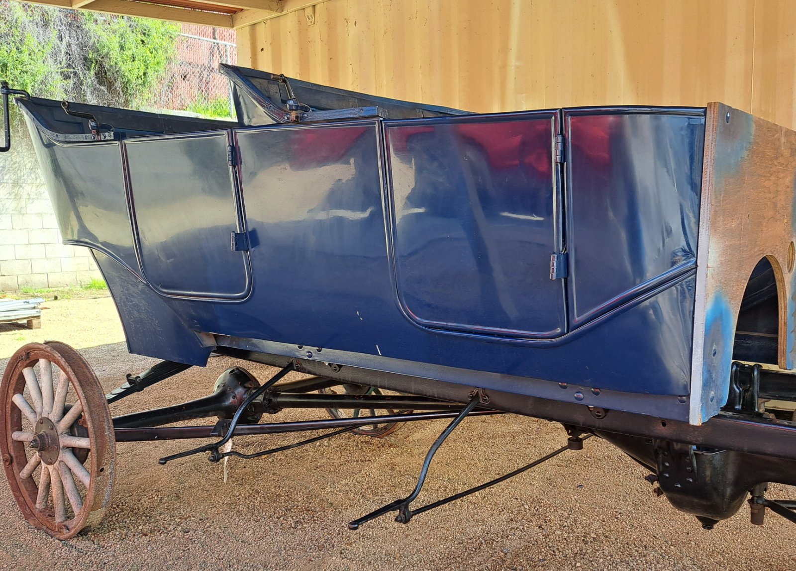I have a 1912 Touring project available for purchase. Engine has a May serial number. Body is excellent condition with a couple minor scuffs here and there. Painted midnight blue. Everything is there to complete the project except fenders, running boards, aprons, top irons and upholstery. Early 12 rivit rear axle housings, two piece driveshaft, 7 rivit teacup pan, includes a set of restored wheels. Includes headlamps, side lamps, tail lamp, horn, carbide generator, windshield, radiator, correct original coil box and coils. This is not a parts car. The previous owner disassembled the car and it sat for several years after his demise. Inquire for further information. Price WAS $12,500 NOW $12,000. Mark Chaffin (951)805-0928