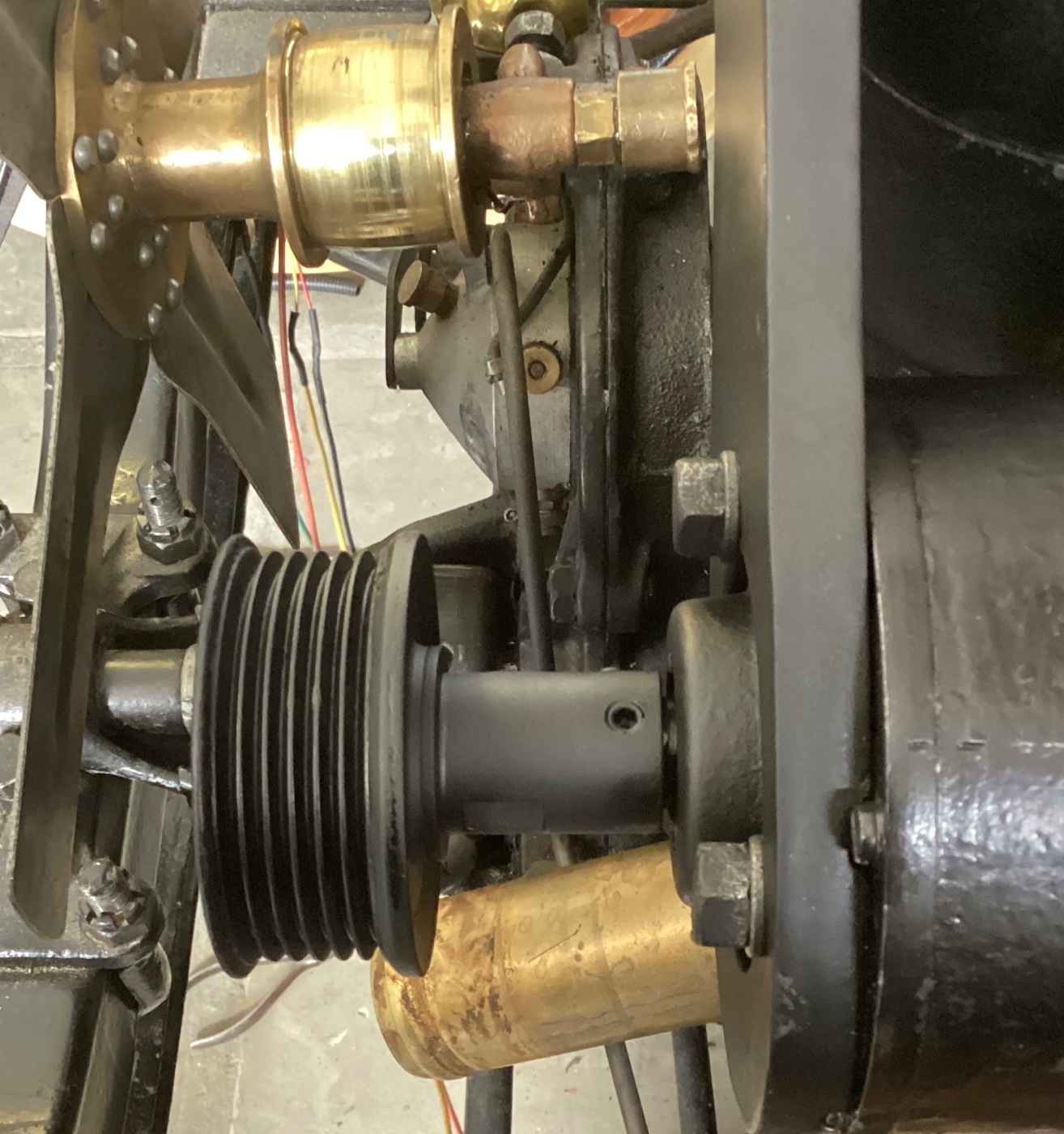 Installed a somewhat period correct model T generator on my 12. Made the bracket and a friend machined an extension to the armature so the fan belt will line up. First bracket I made was too high, thinking if I wanted to have a water pump but made the second one to place the generator lower next to the motor and not sticking up. A modern alternator just did not look good next to all the original 12 motor and everything and that is why I decided on a generator. I will go just so far to be original but in this case there is nothing closer to original 1912 factory equipment. Installing brake lights and blinkers at the same time, a lot of wires.