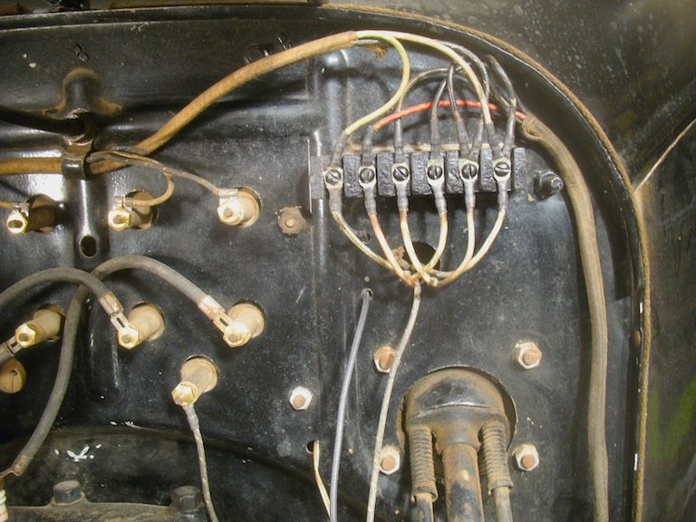 Thank you for the pictures. That's very helpful. The hole in the firewall is below the terminal block, so they must have put in a standard late low cowl metal firewall when they replaced it. The car was not represented as a correct 1919, so I expected to learn of non original stuff on it as time went by. You can tell how little I knew in that I really wasn't even aware that it should have had a wood firewall. Learning new things ever day.